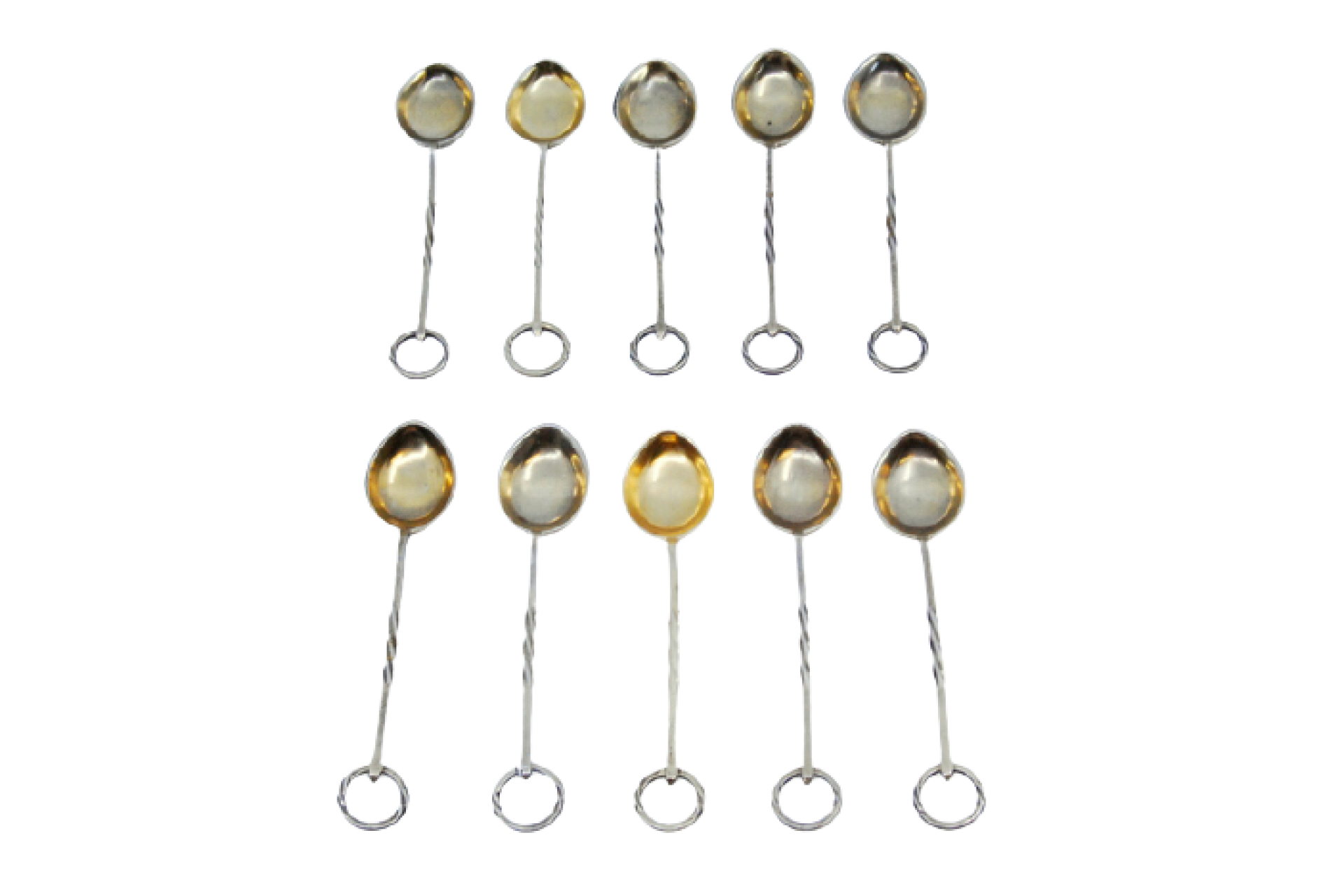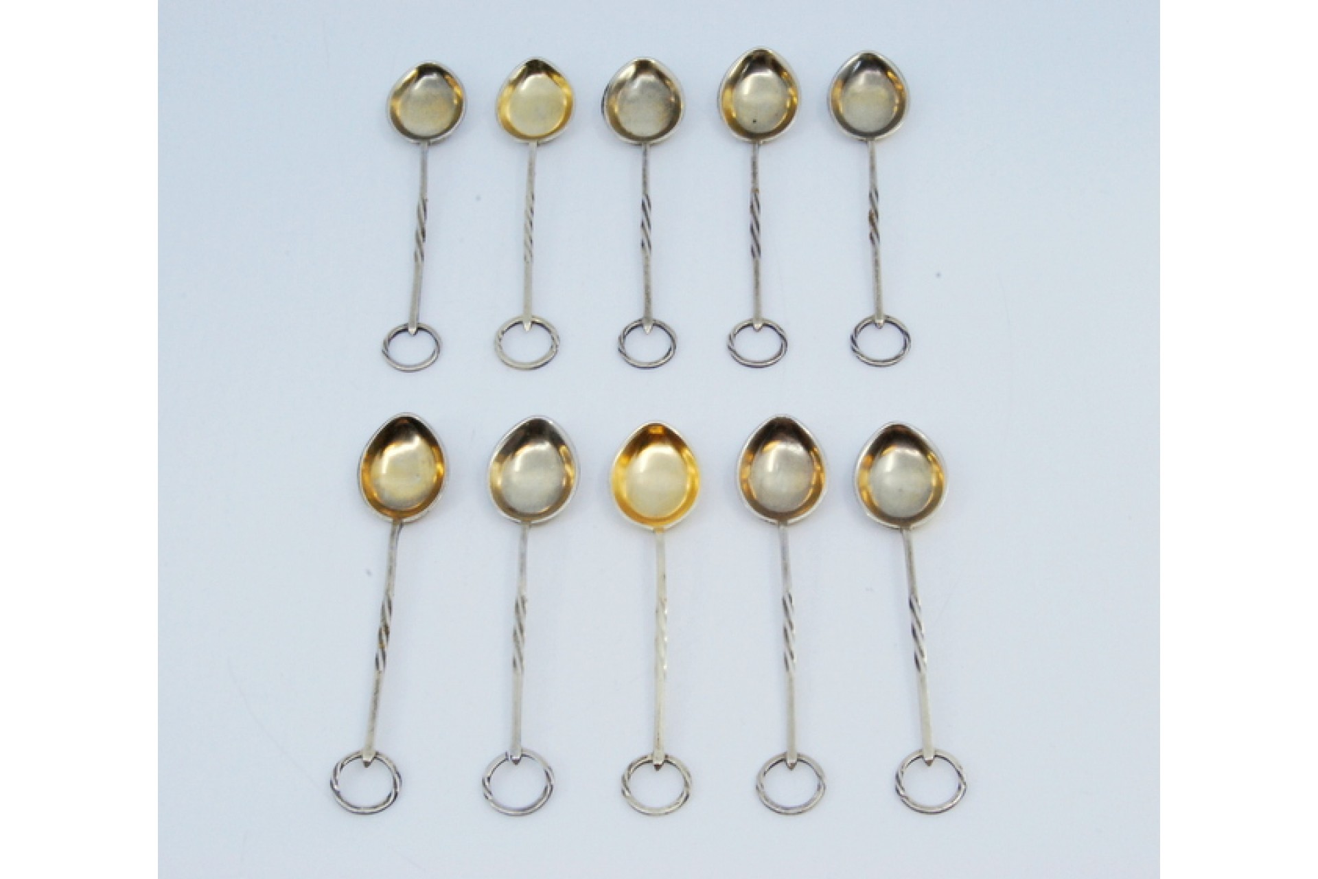 • Descrição: Conjunto de dez colheres de café em prata com cabos retorcidos.