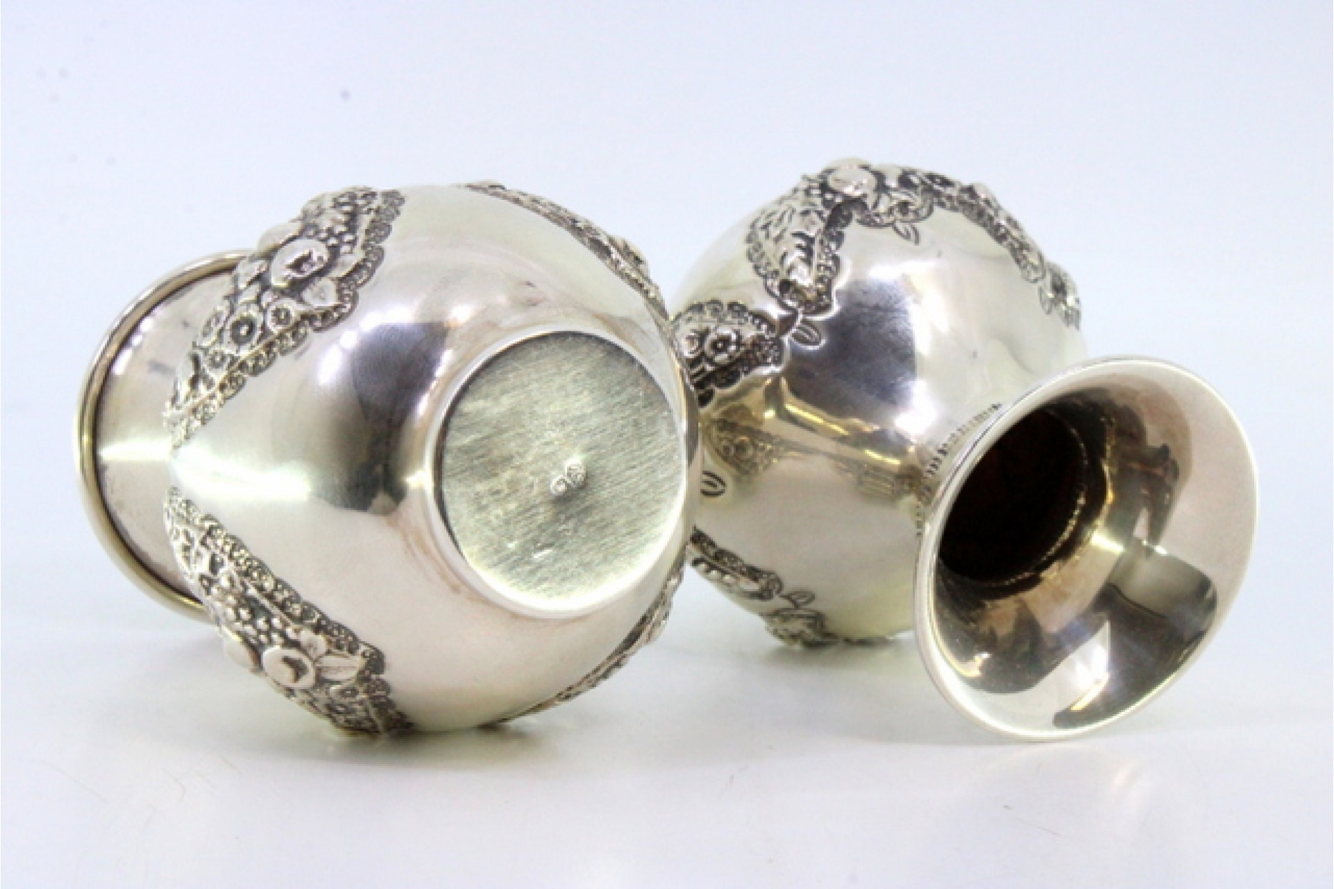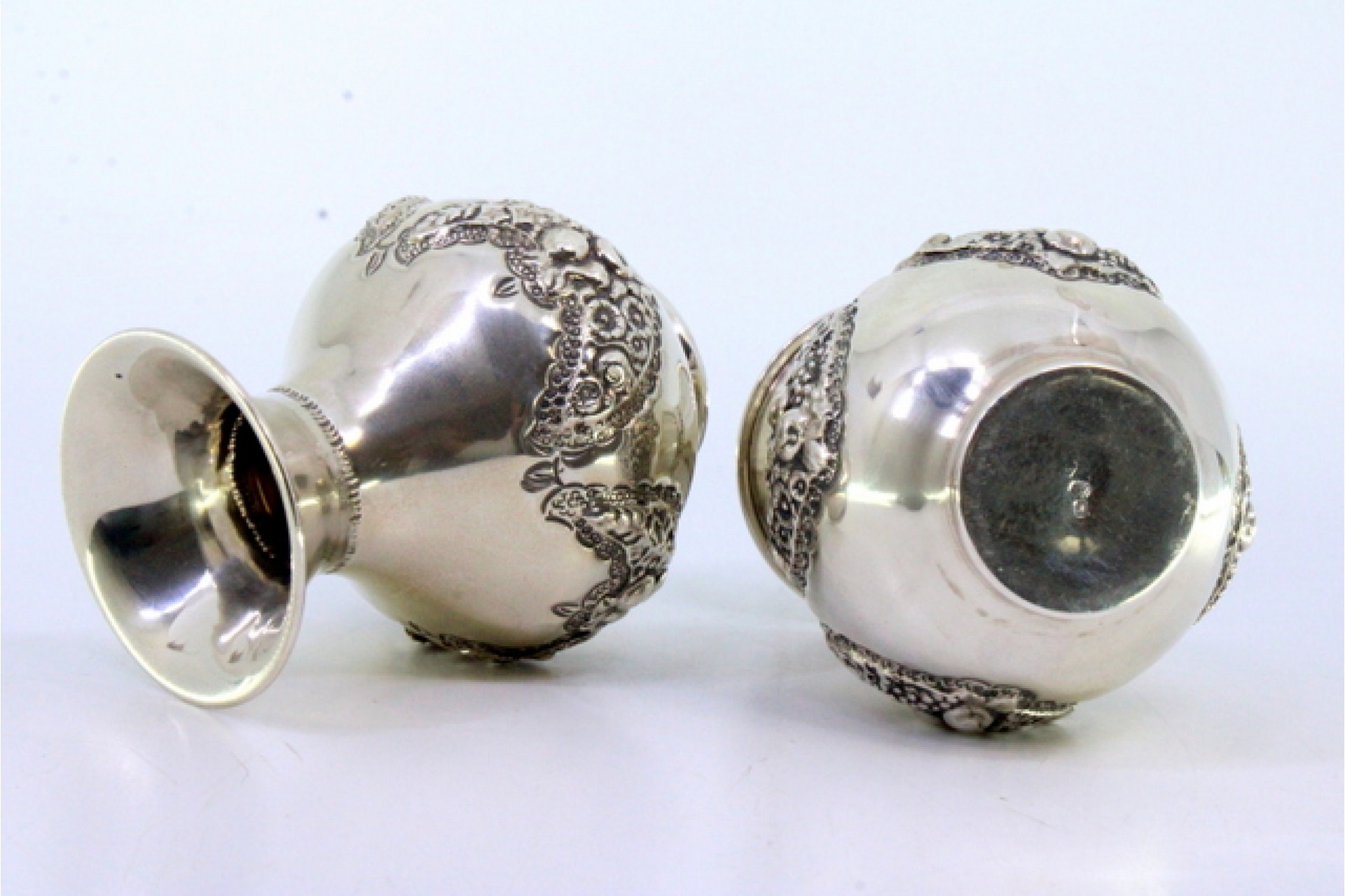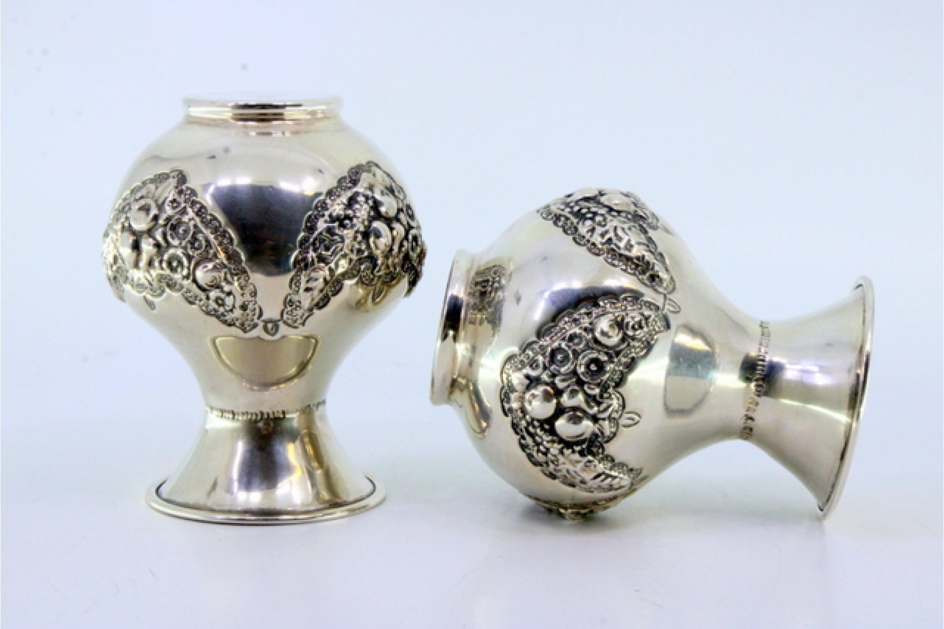• Descrição: Conjunto de jarras em prata com motivos florais e grinaldas relevadas.