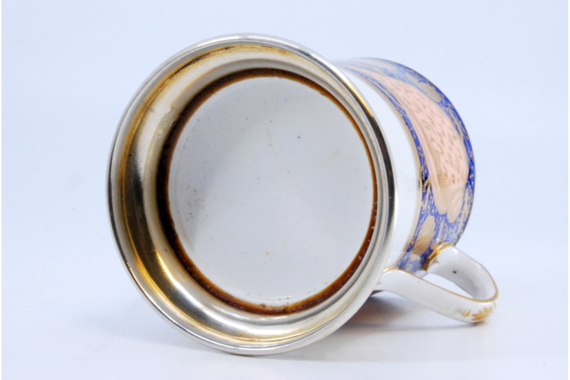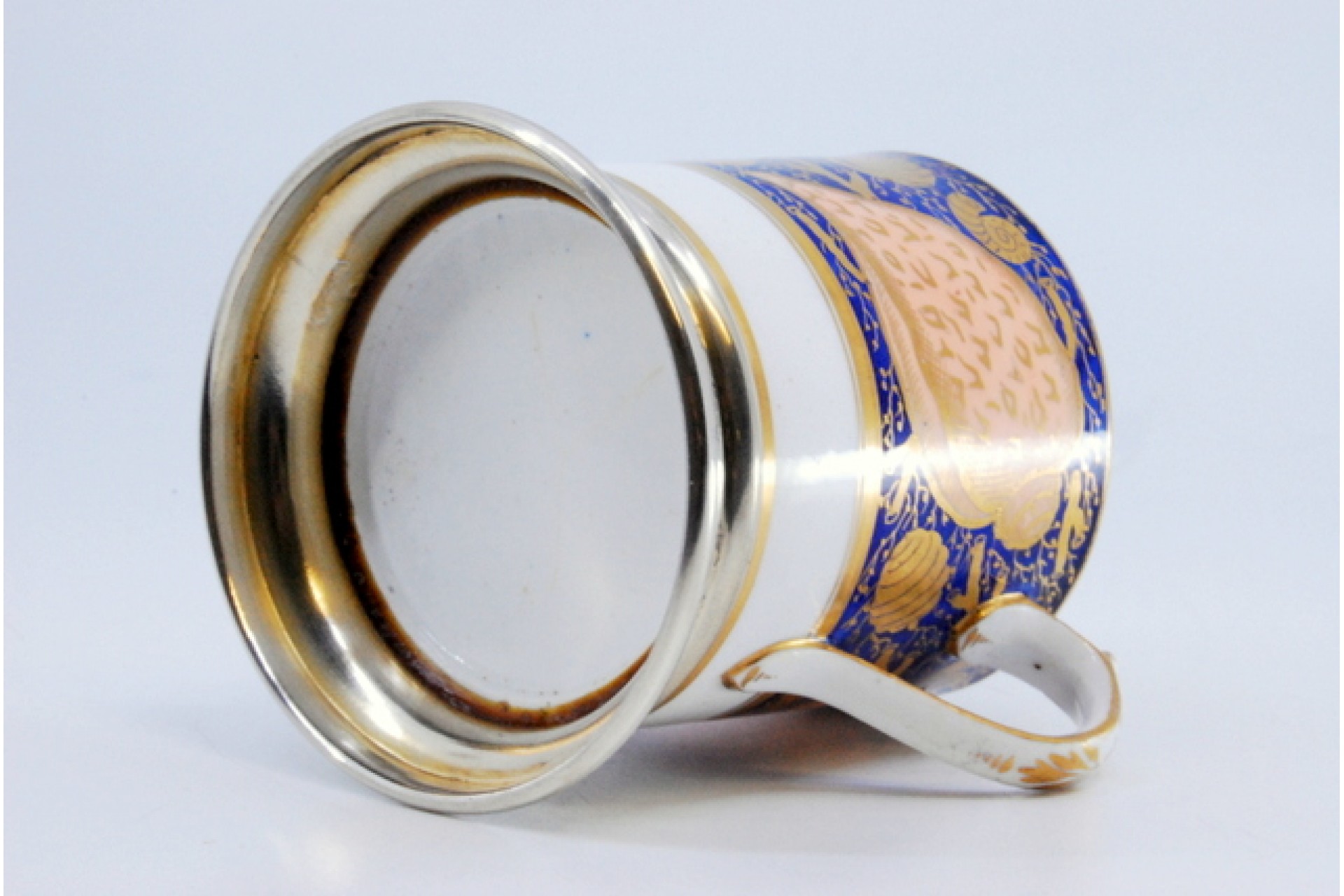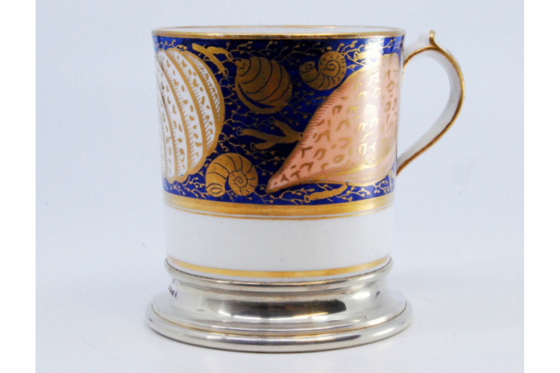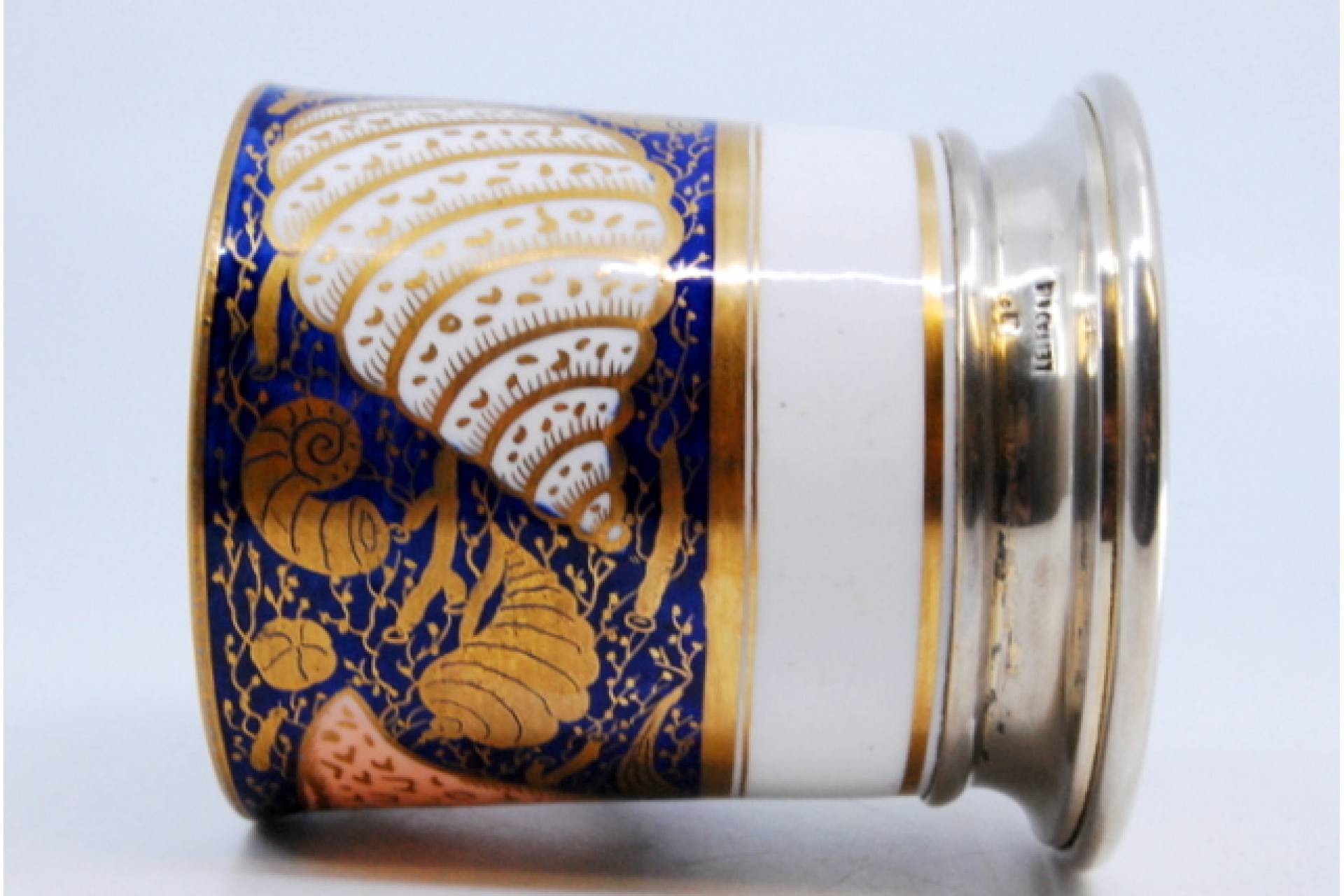 Copo em porcelana com base em prata.