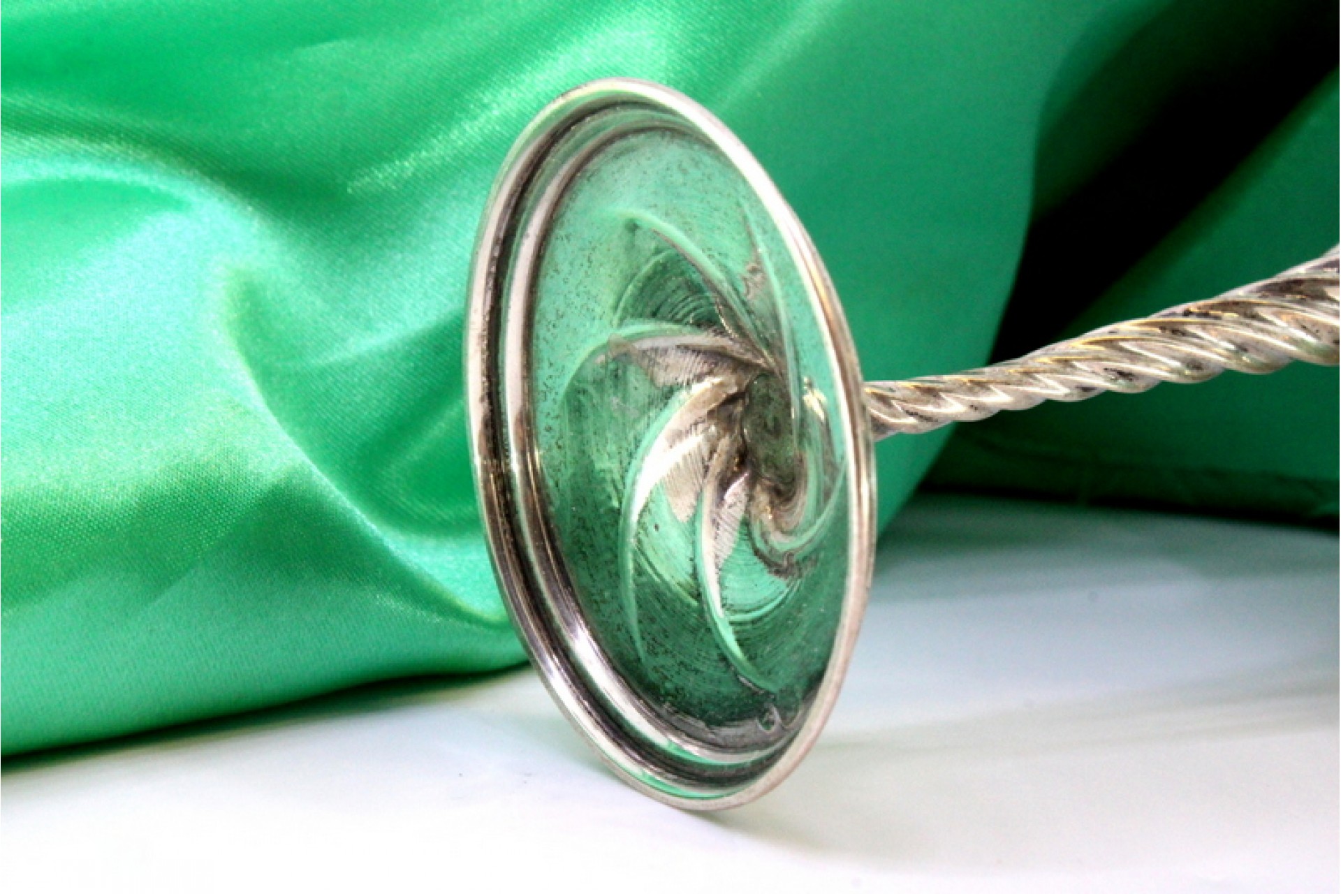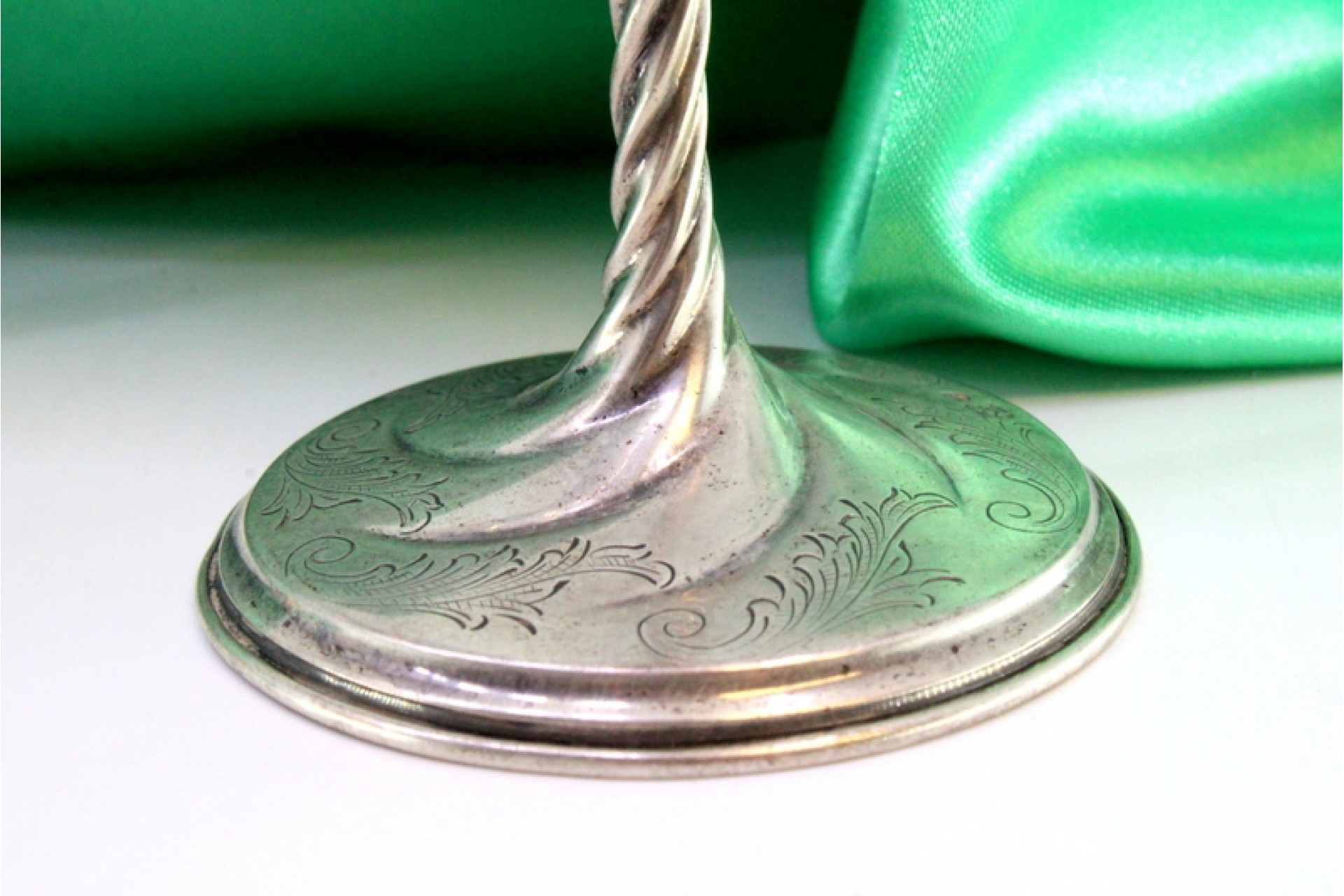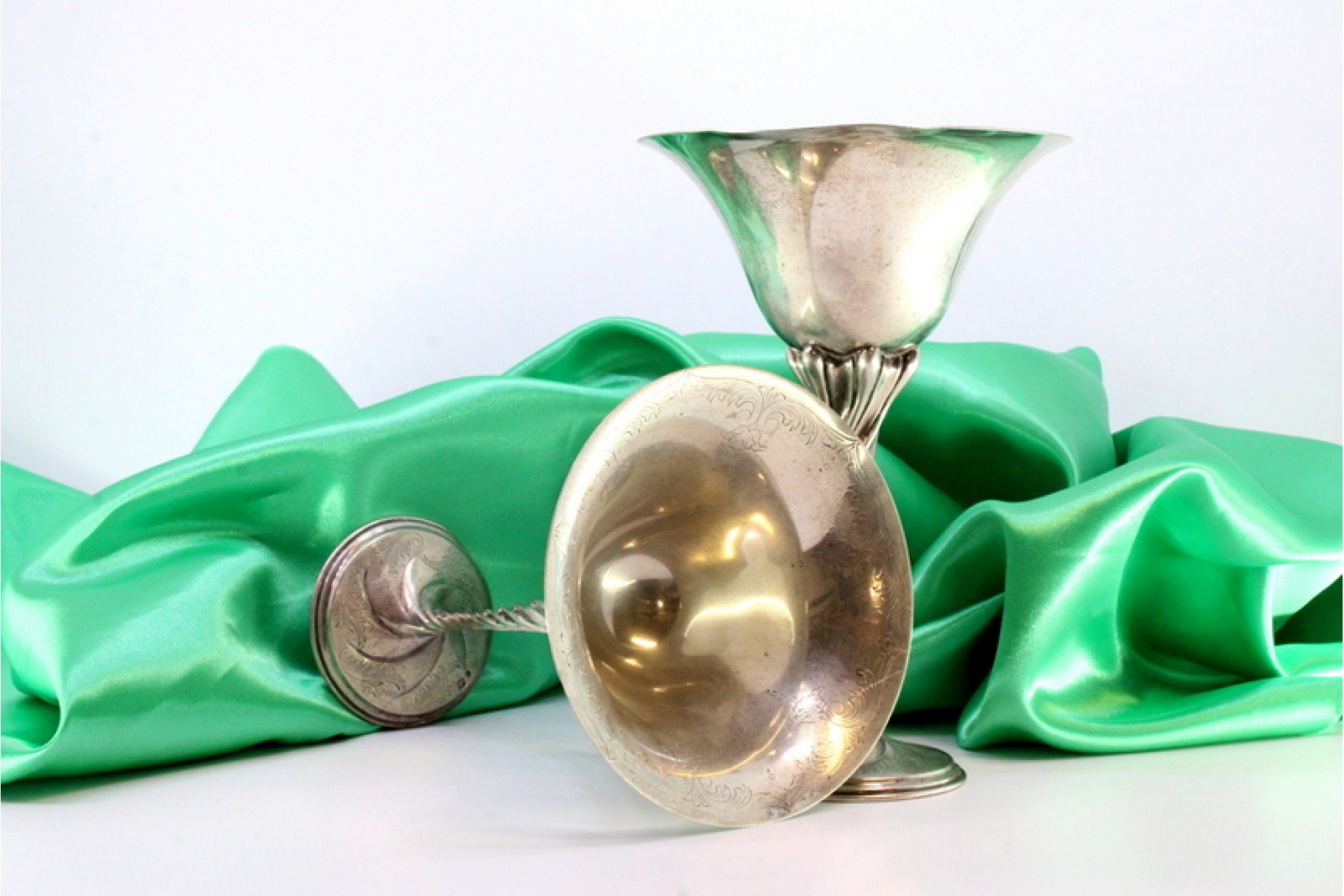 • Descrição: Copos em prata de pé alto com torcidos sobre bases circulares com motivos vegetalistas gravados.