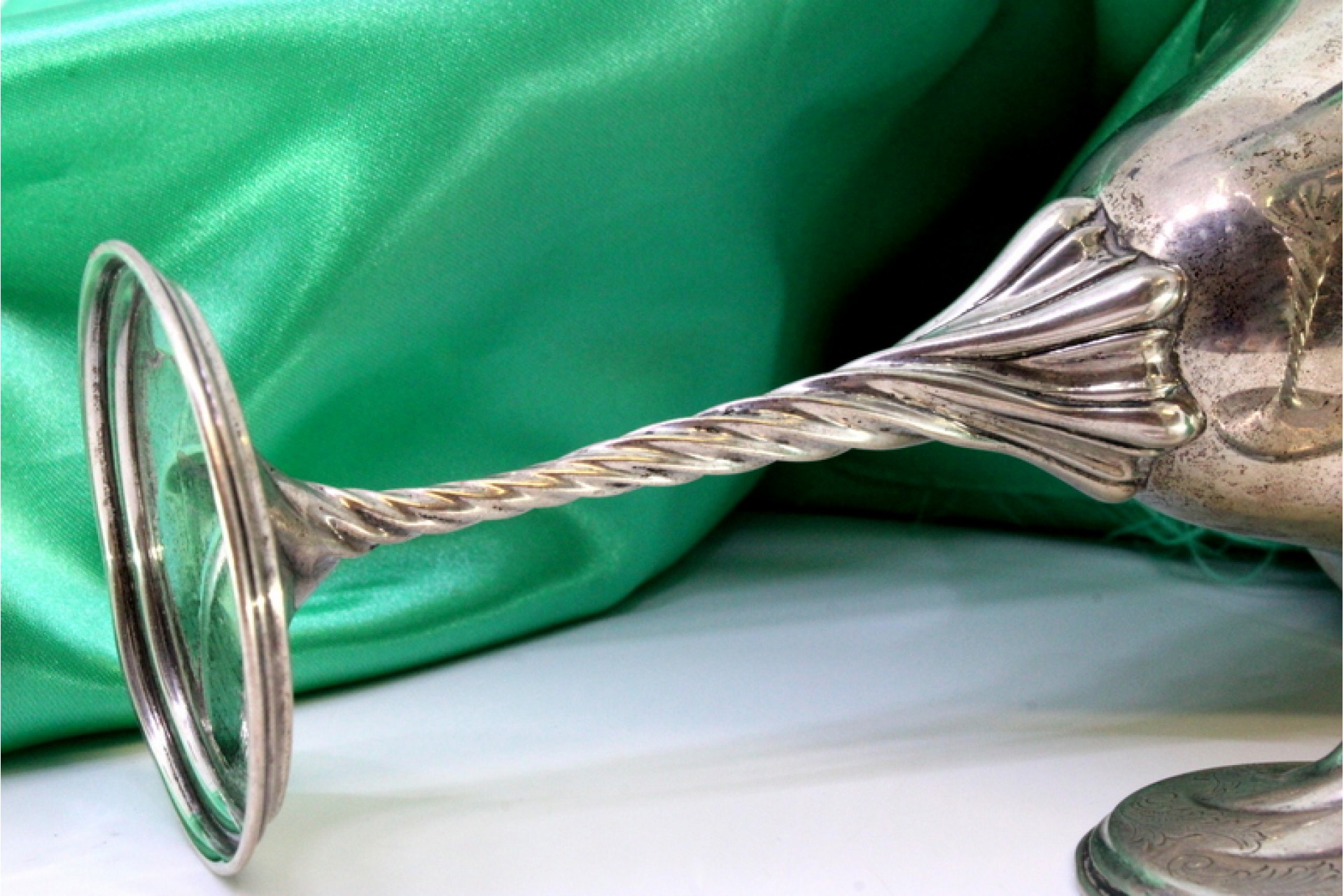 Copos em prata de pé alto com torcidos sobre bases circulares