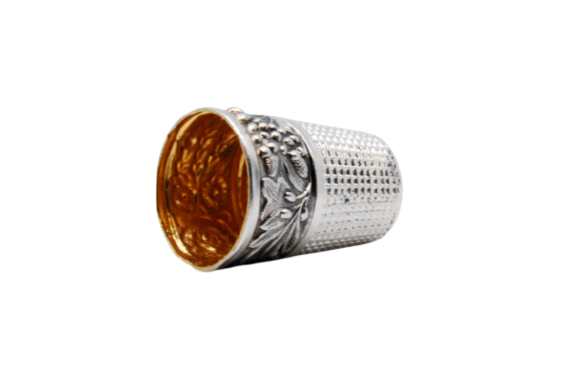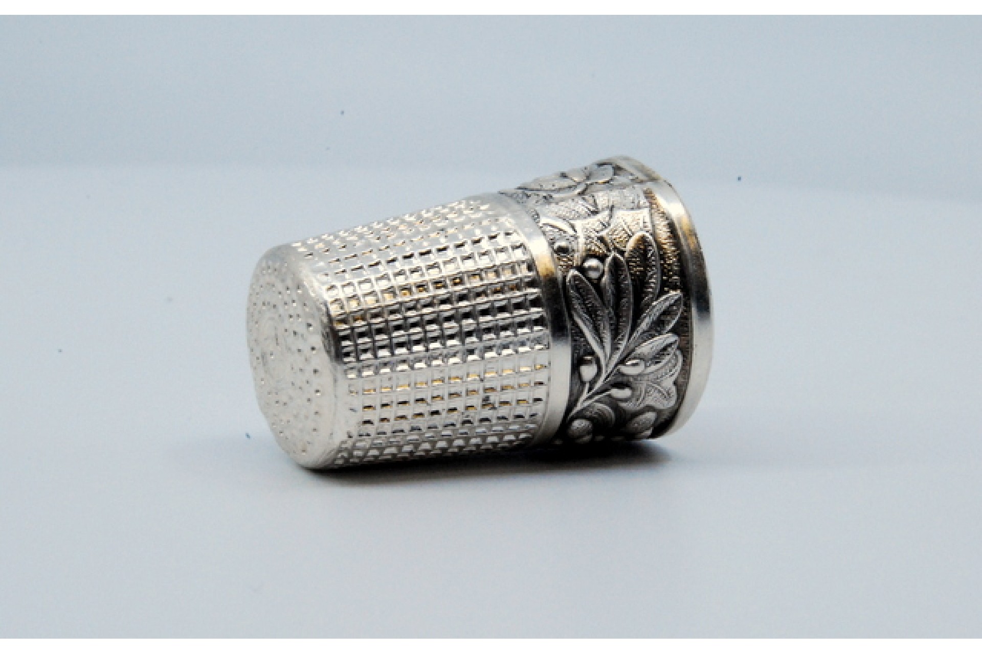 • Descrição: Dedal em prata com flores e ramos em relevo na base.