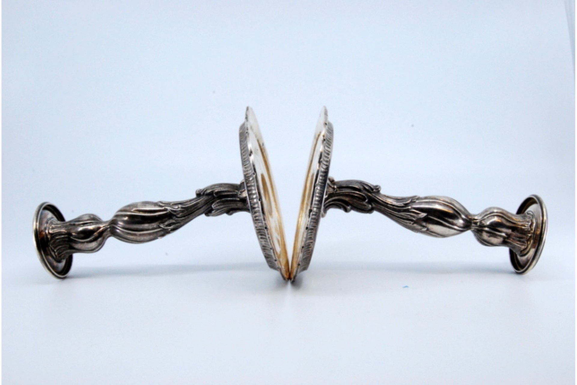 • Descrição: Candelabros em prata com relevos e bases circulares.