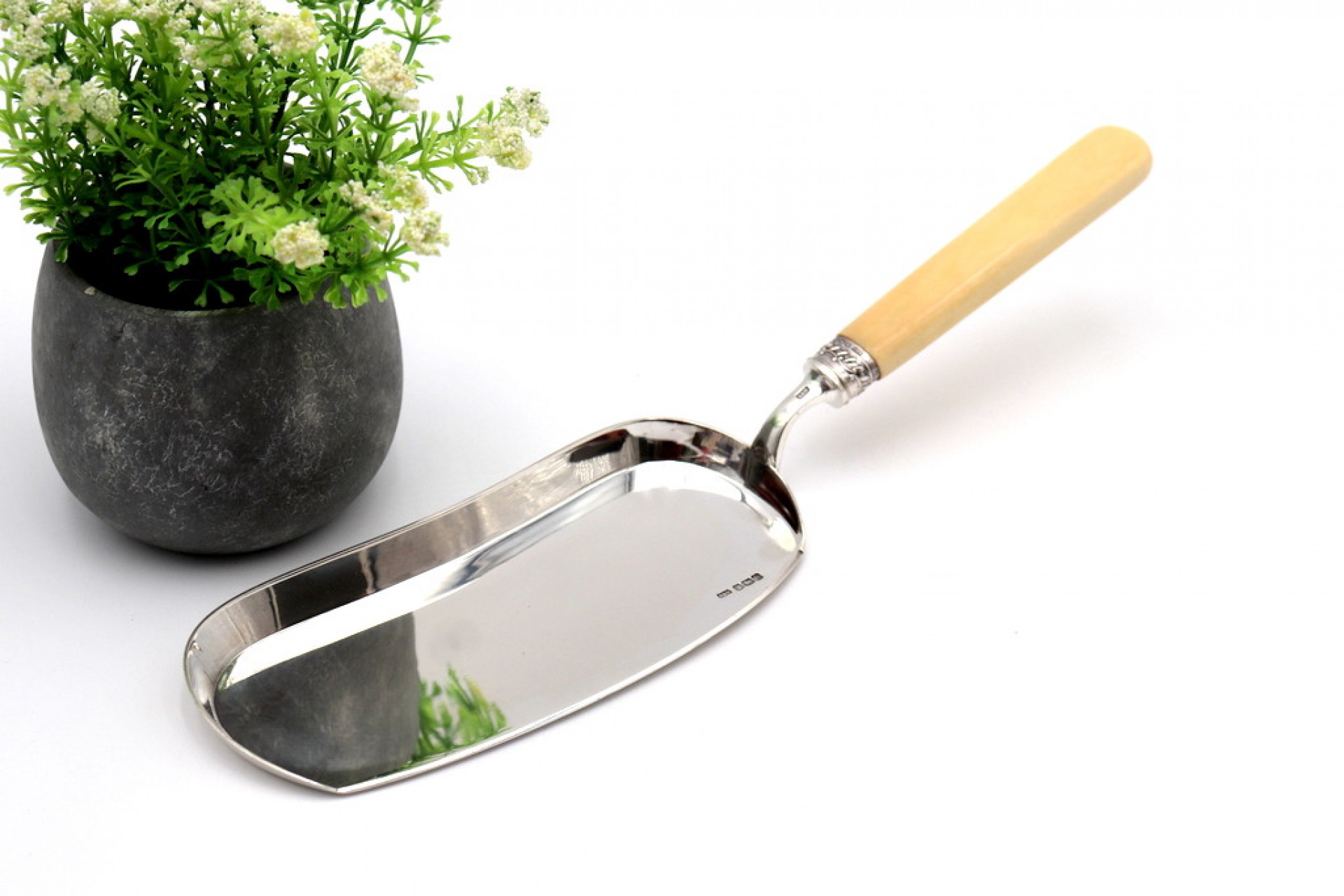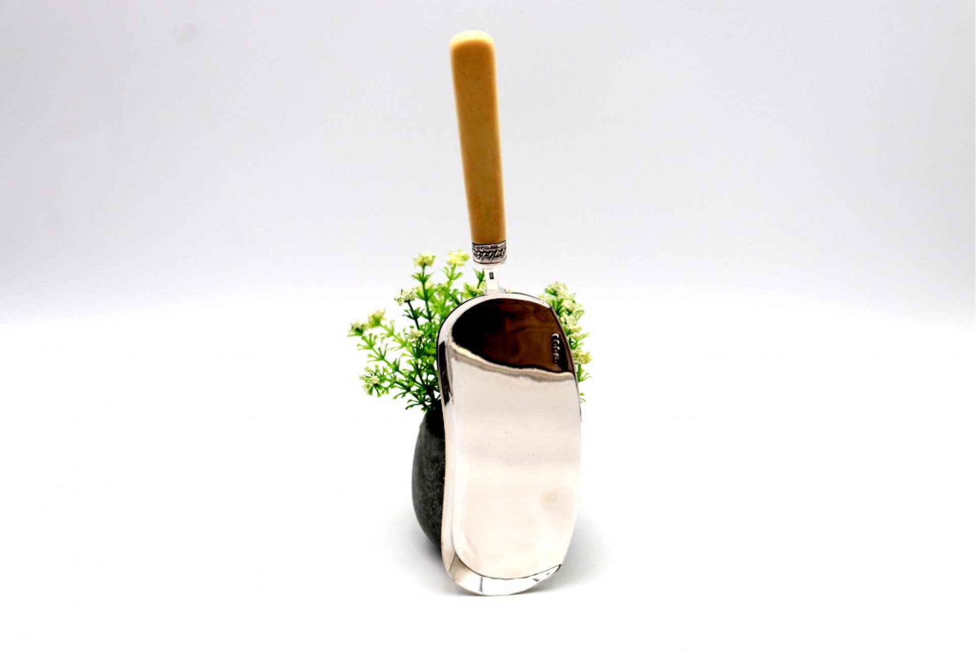 • Descrição: Espátula para bolos em prata lisa com cabo em osso.