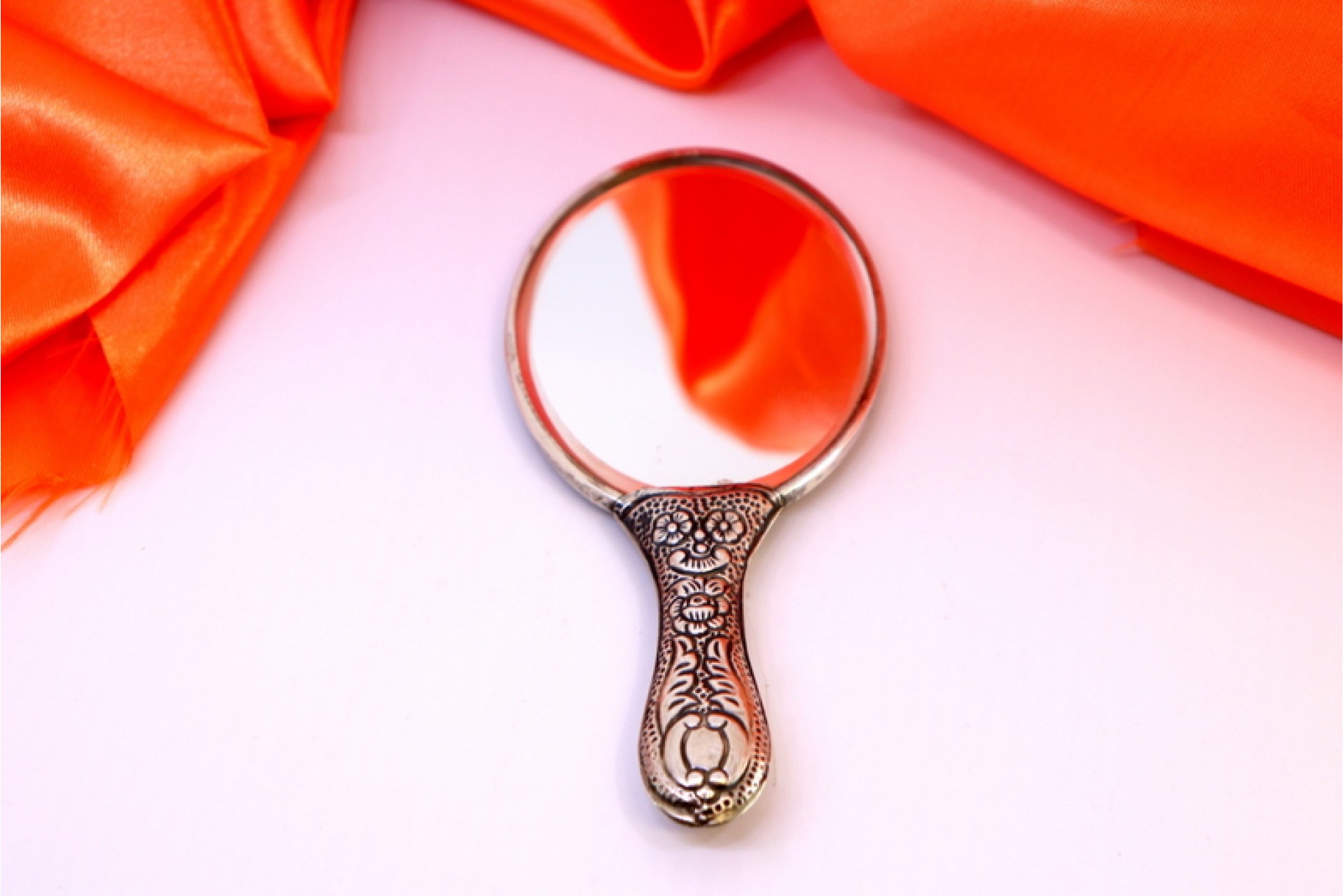 • Descrição: Espelho de mão em prata com motivos florais revelados.