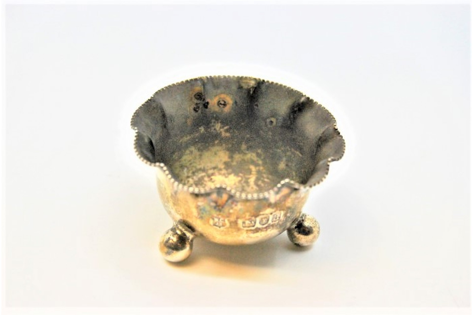 • Descrição: Aneleira em prata gomada e assente em três pés.