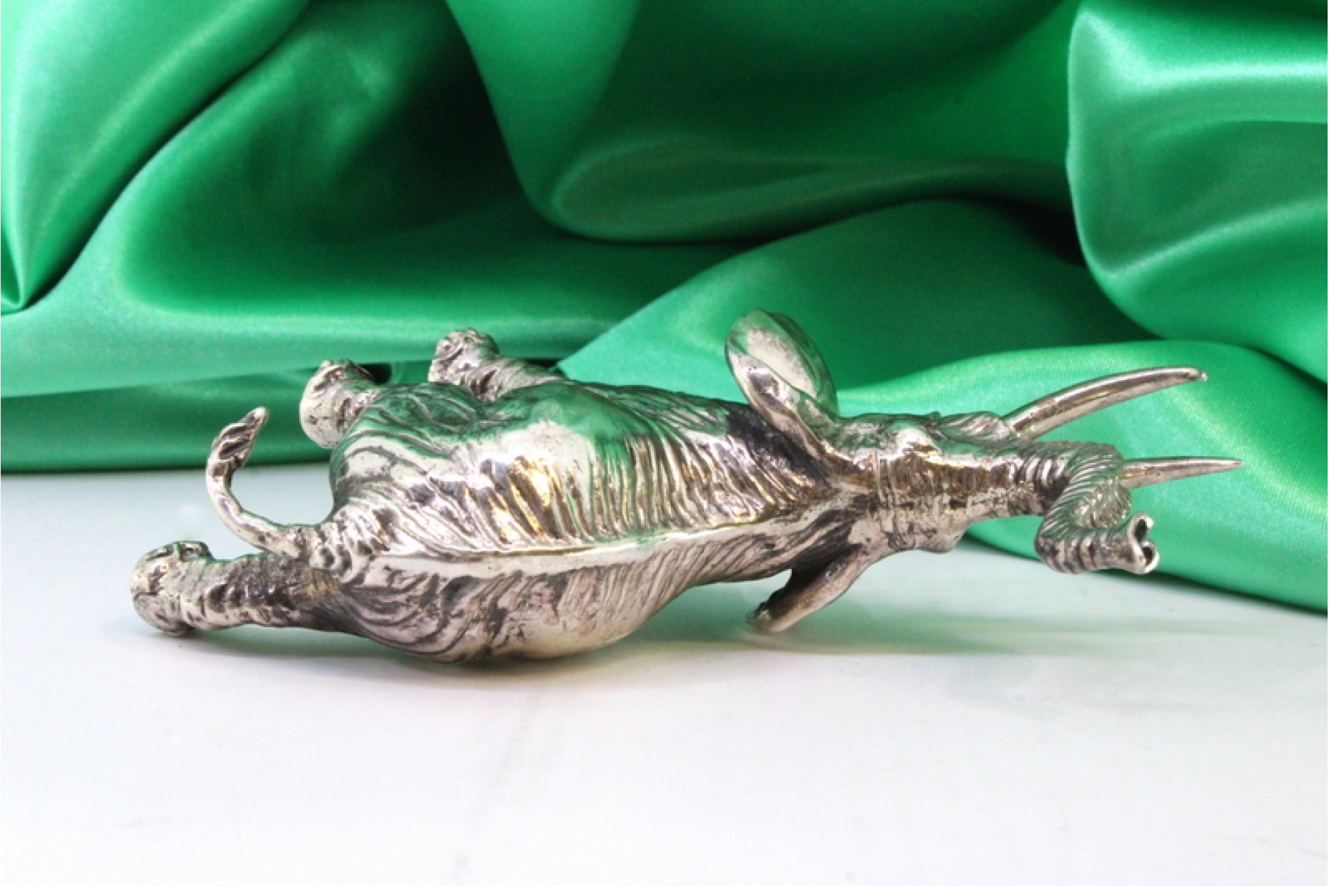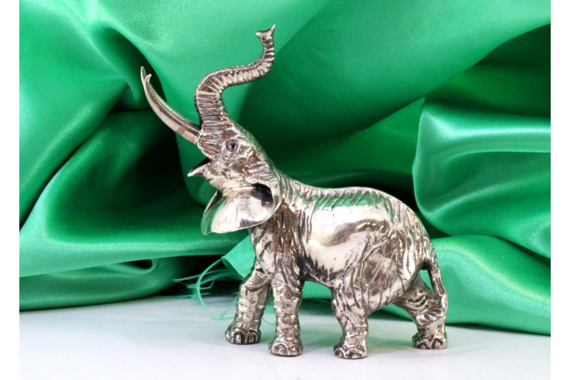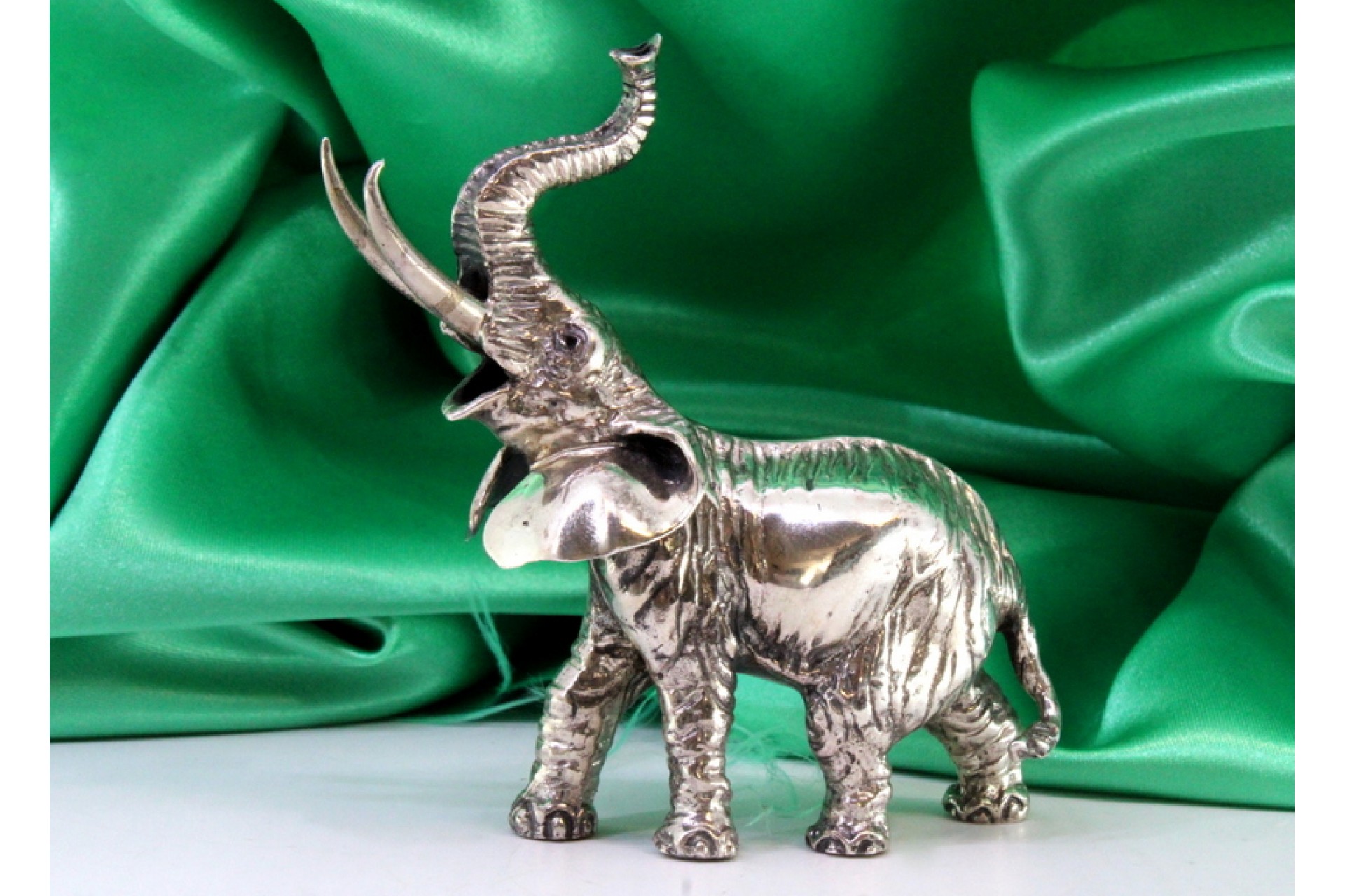 • Descrição: Figura de elefante africano miniatura em prata revelada.