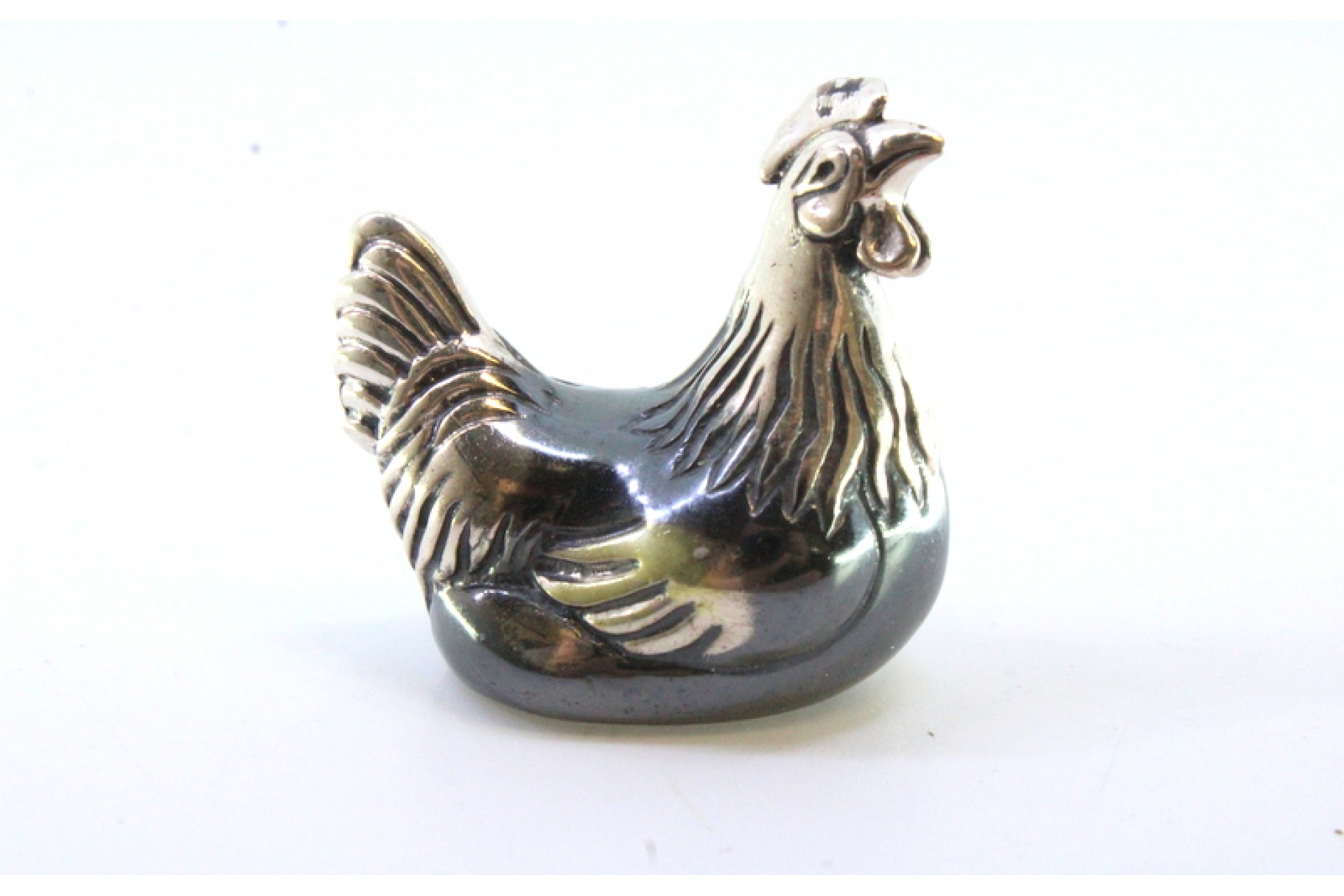 • Descrição: Galinha em prata nielada.