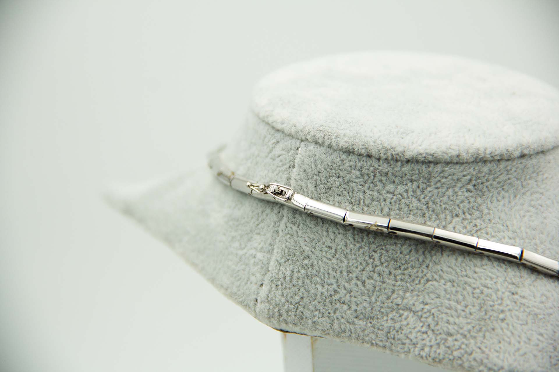 Gargantilha de ouro branco com elos articulados, diamantes (16)