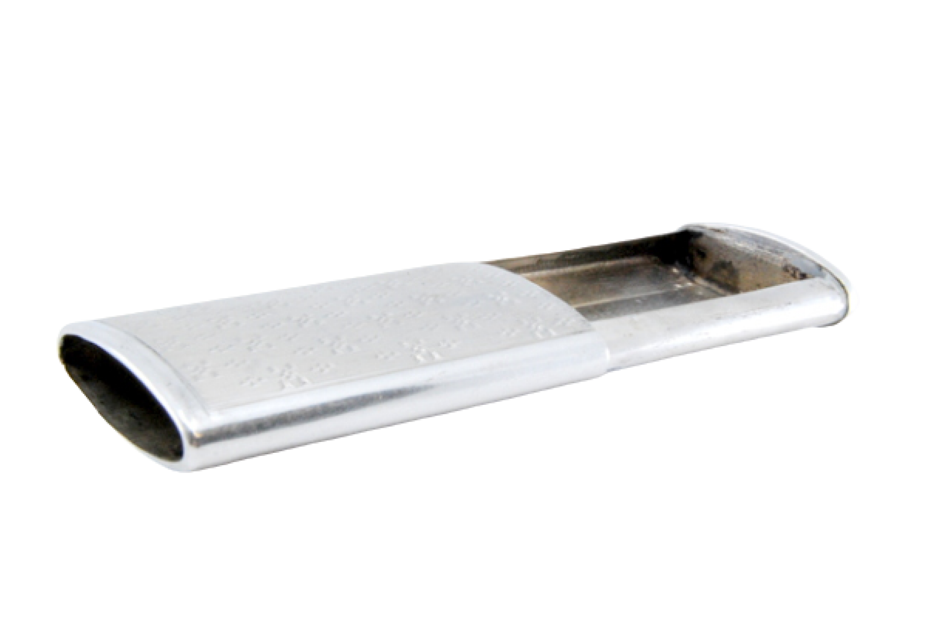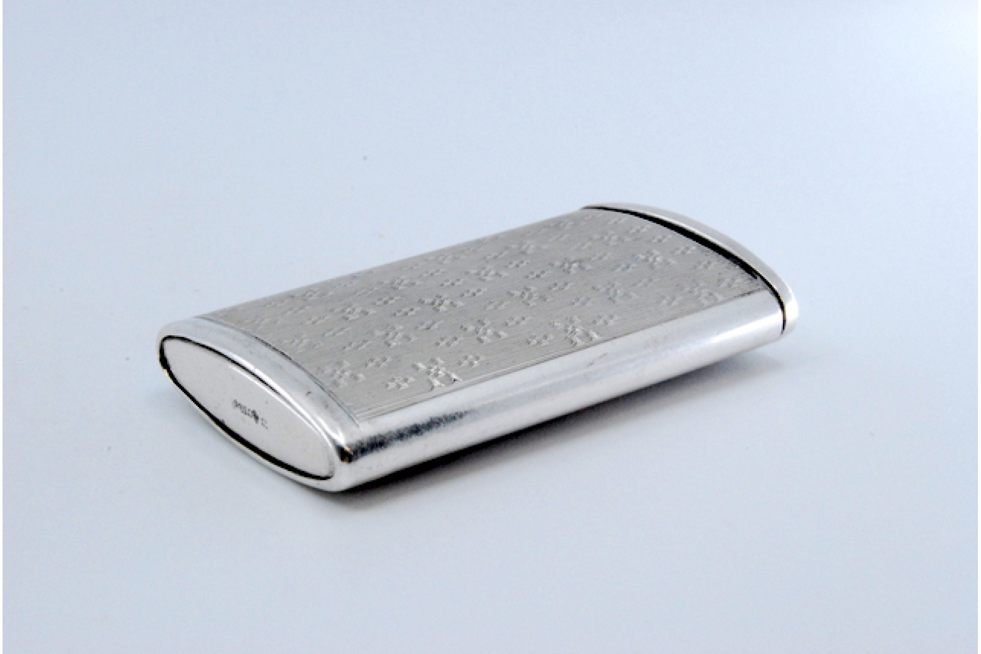 • Descrição: Caixa de comprimidos em prata guilhochada na tampa corrediça.