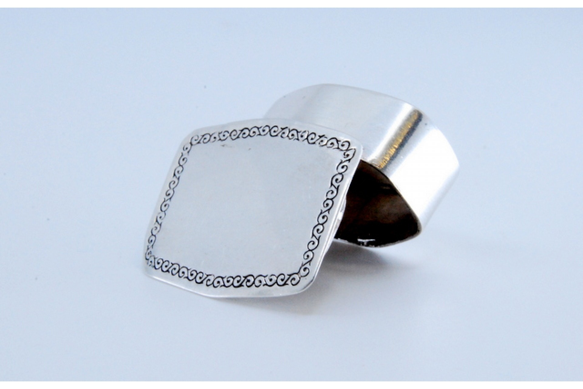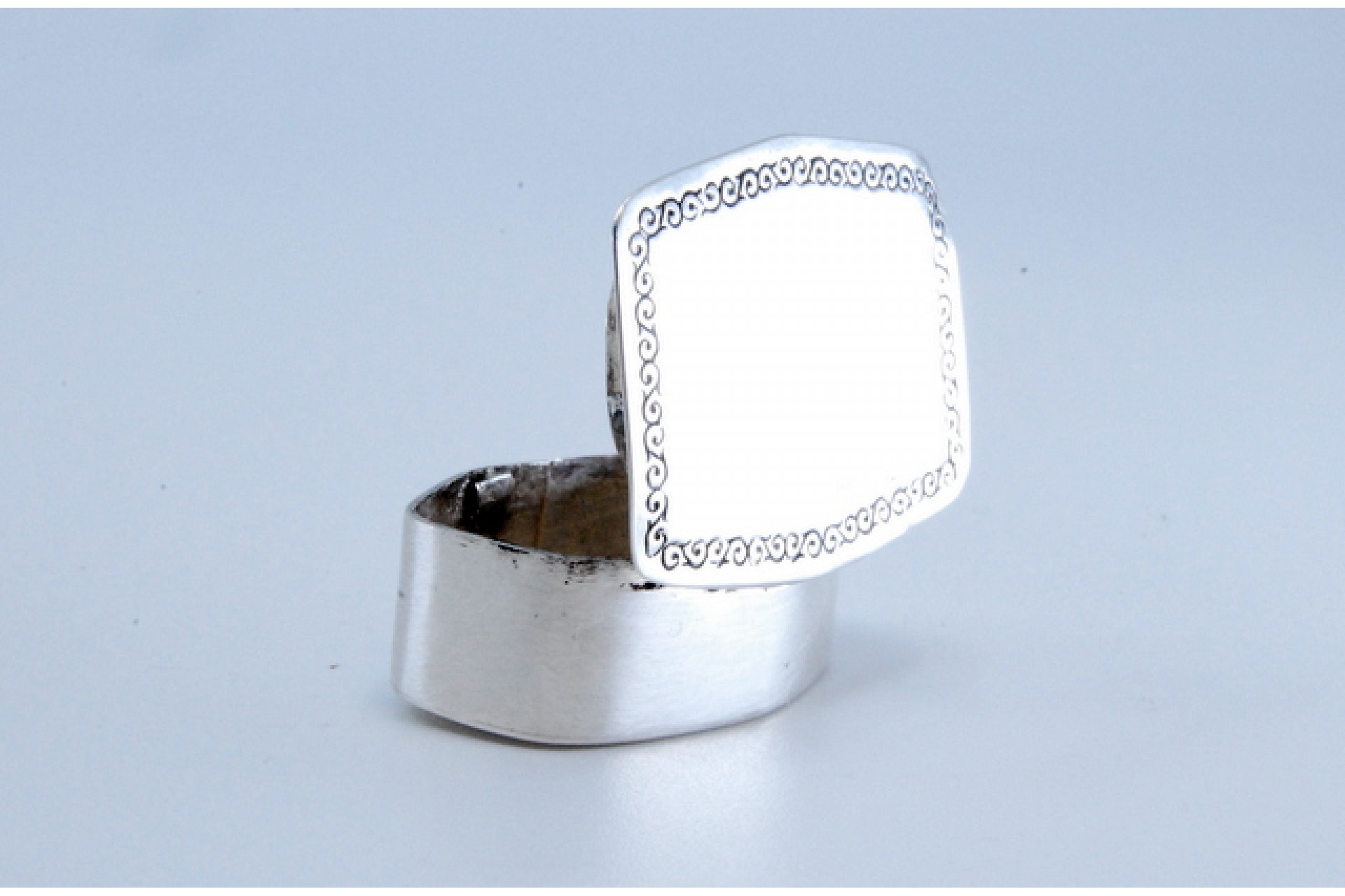 • Descrição: Caixa de comprimidos em prata com friso na envolvência na tampa basculante.