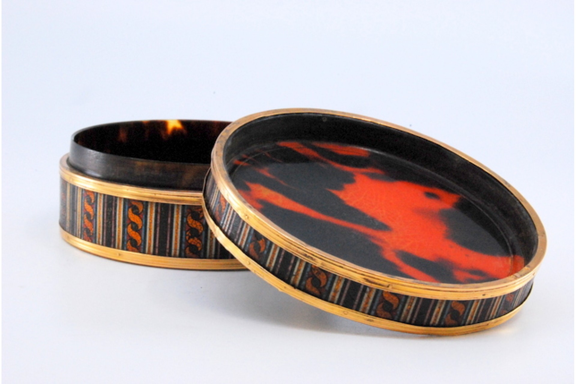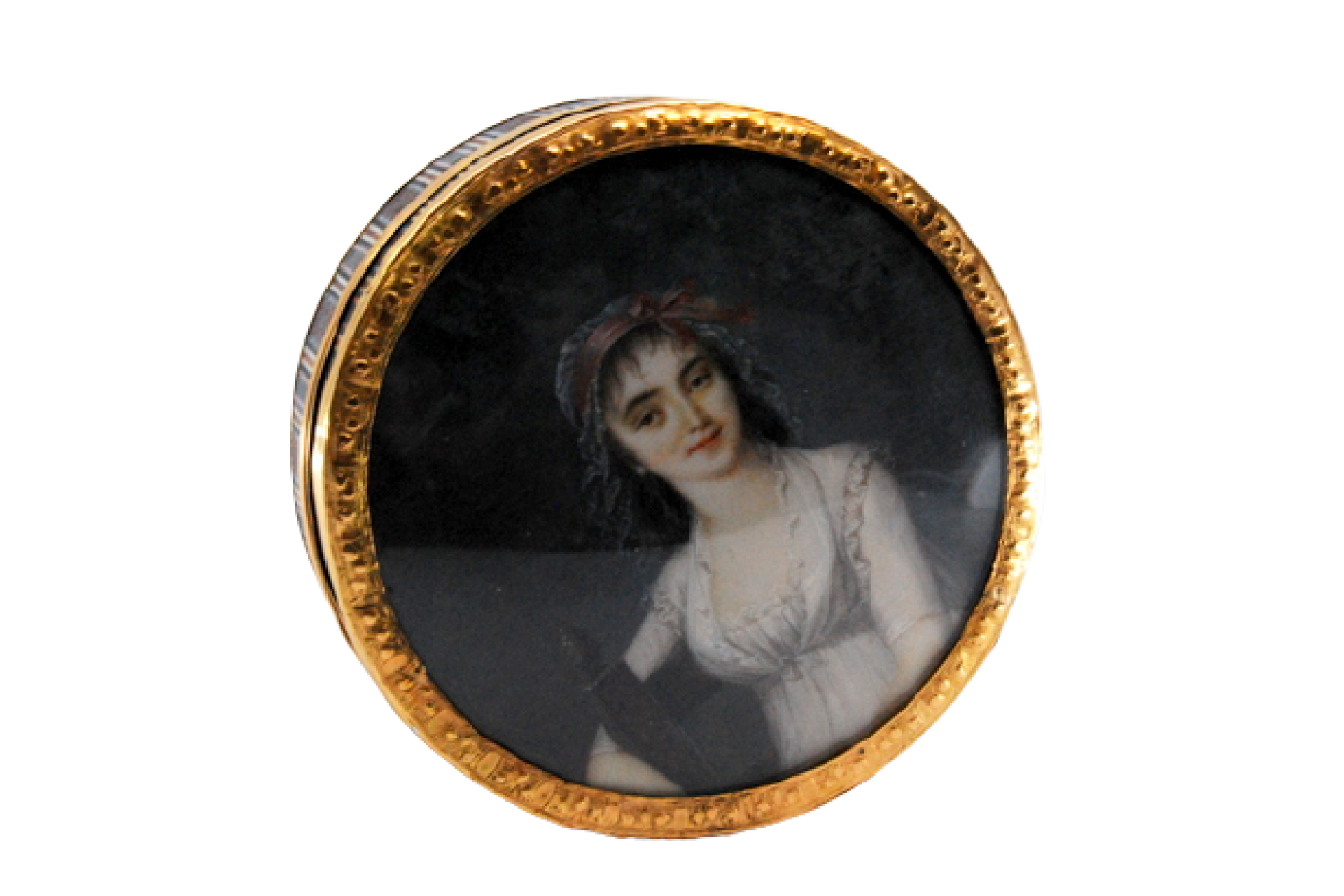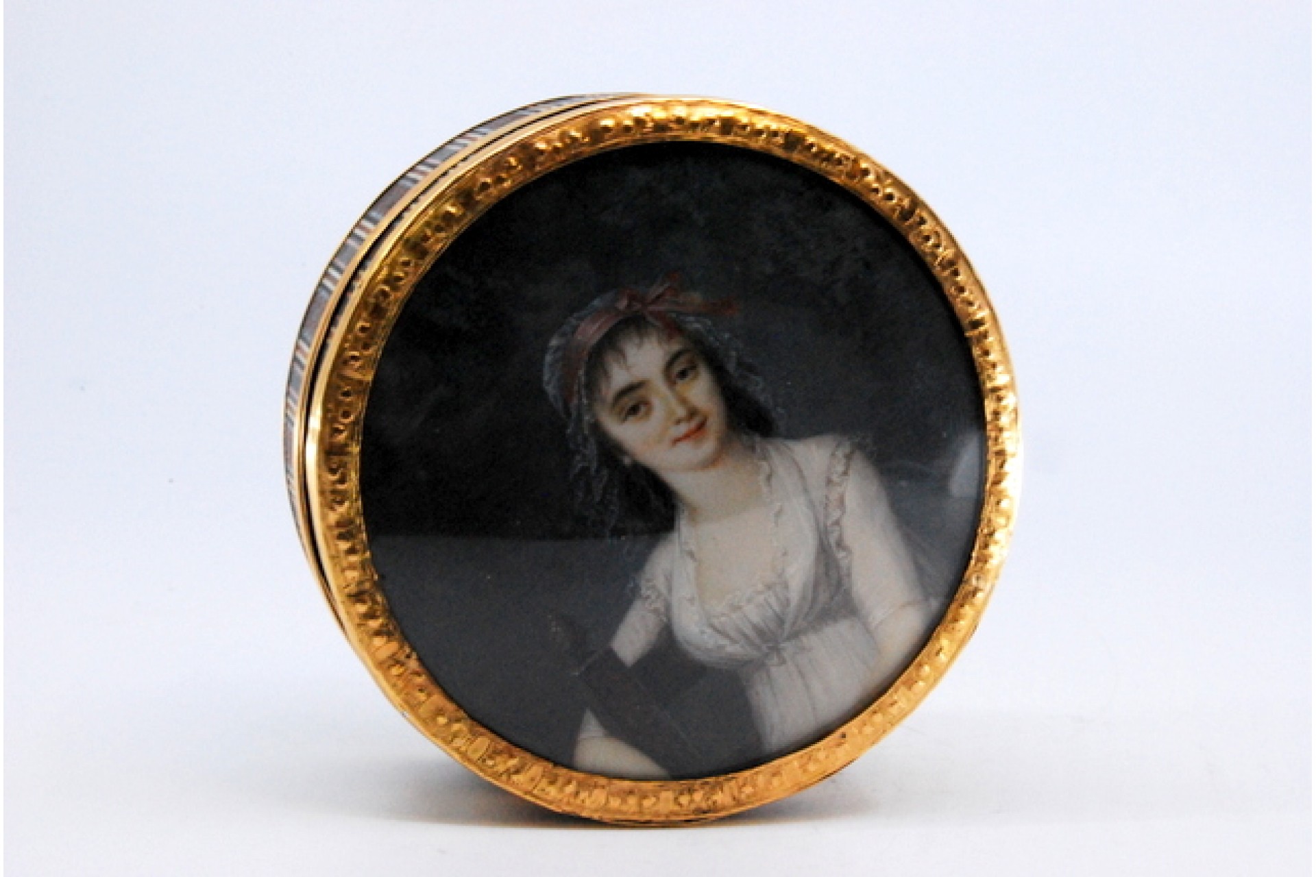 • Descrição: Caixa de toilette em ouro sobre tartaruga com dama antiga na tampa amovível.