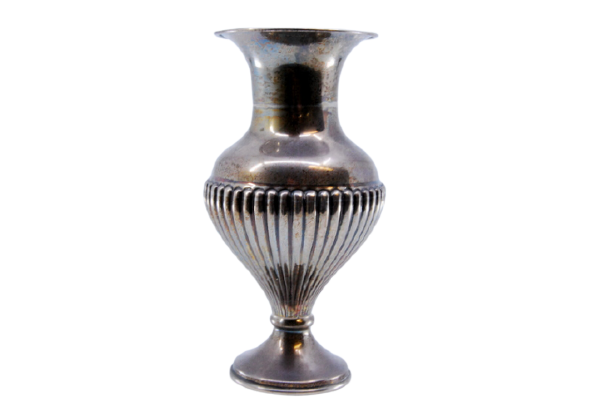 • Descrição: Jarra pequena em prata canelada com bojo e base lisas.