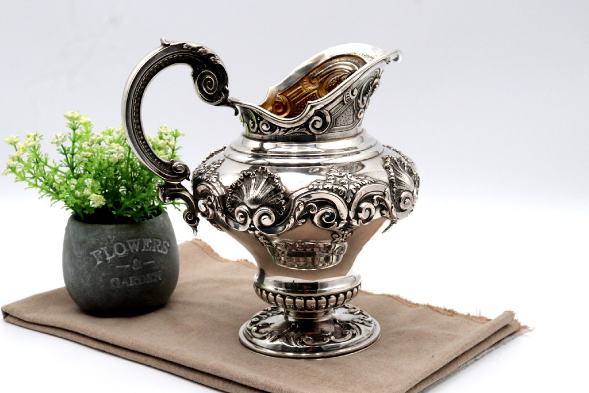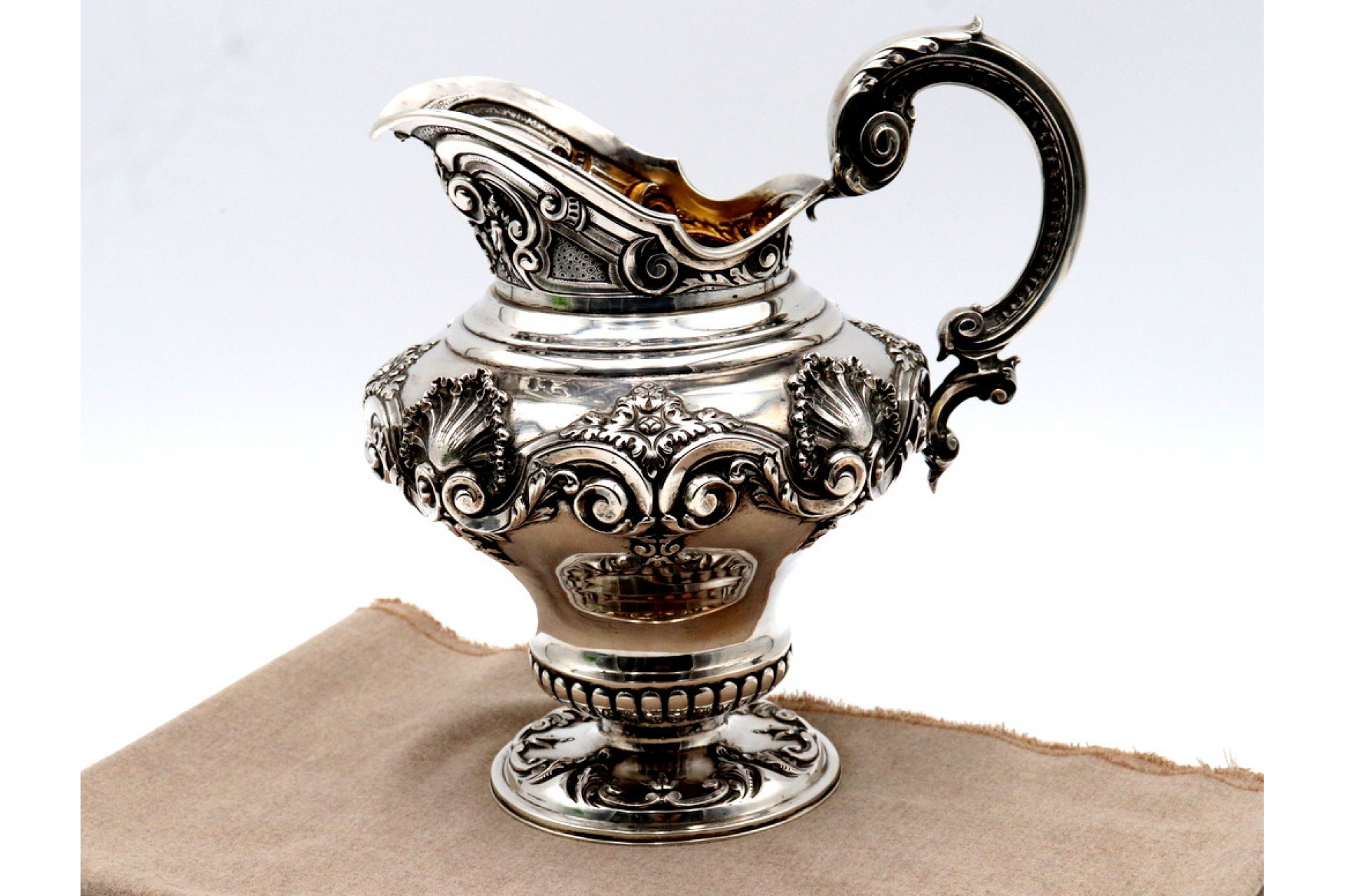 Etiquetas: Jarro Água, Prata, Relevo, Concheada, Cartelas