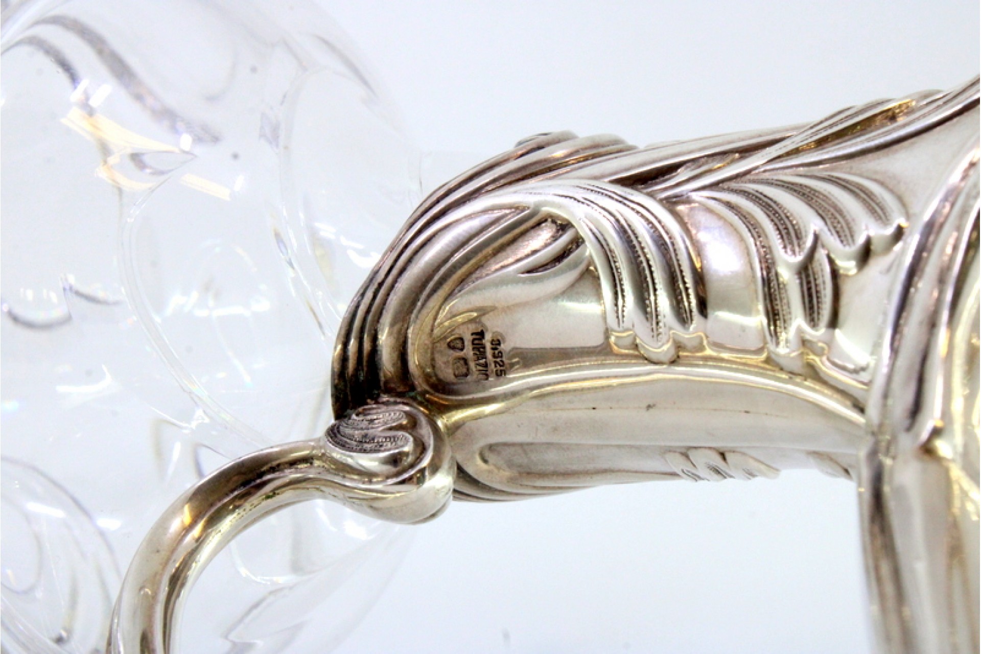 • Descrição: Jarro de vinho em prata  em vidro lapidado com relevos e base circular.