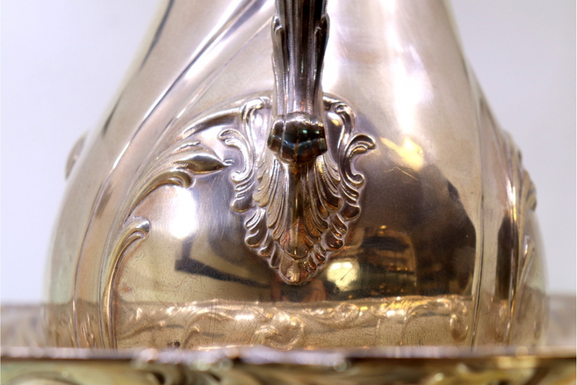 Lavanda e gomil em prata com folhas de acanto relevadas e bases circulares com frisos.