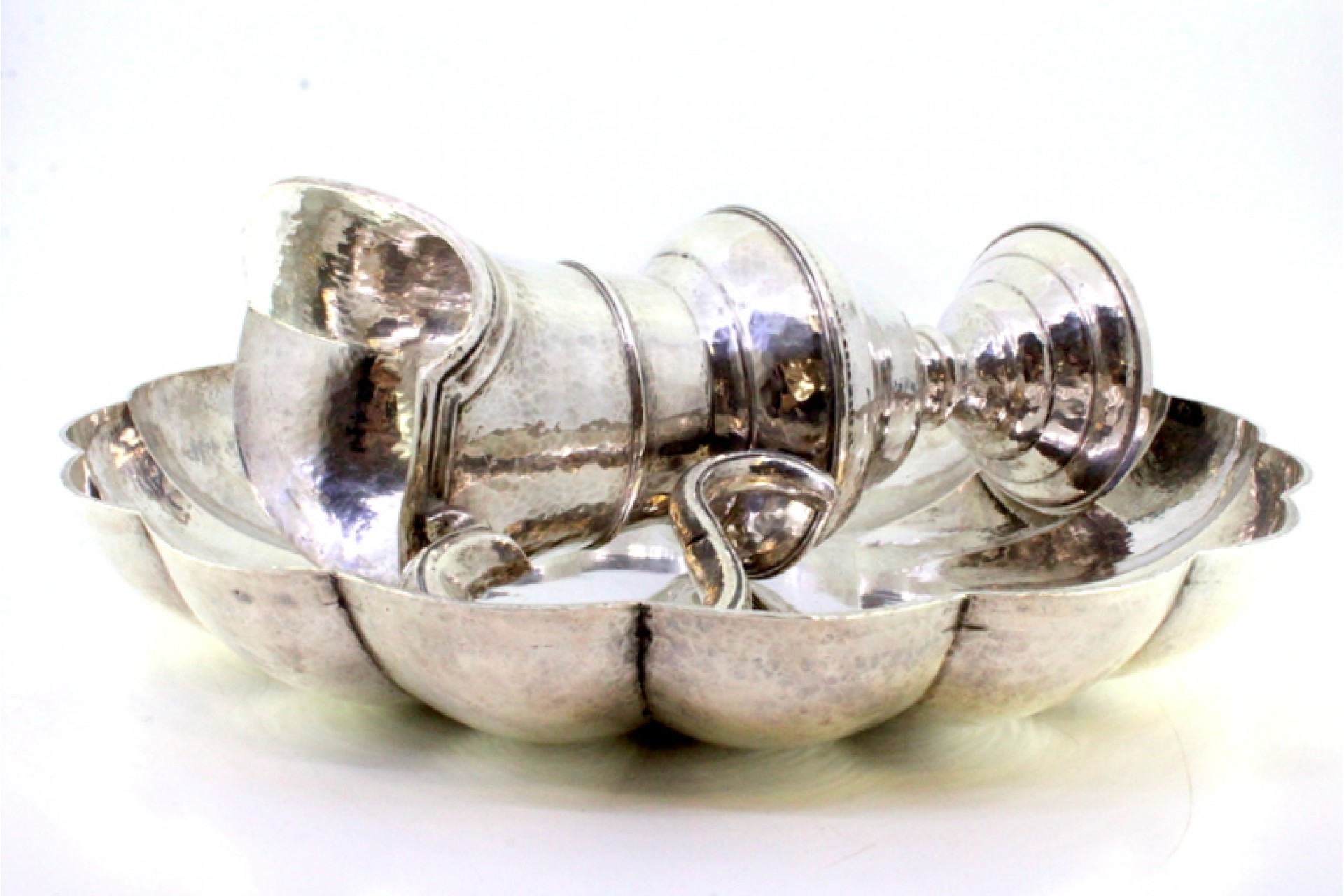 Lavanda e gomil em prata martelada com lavanda em forma de gomos.