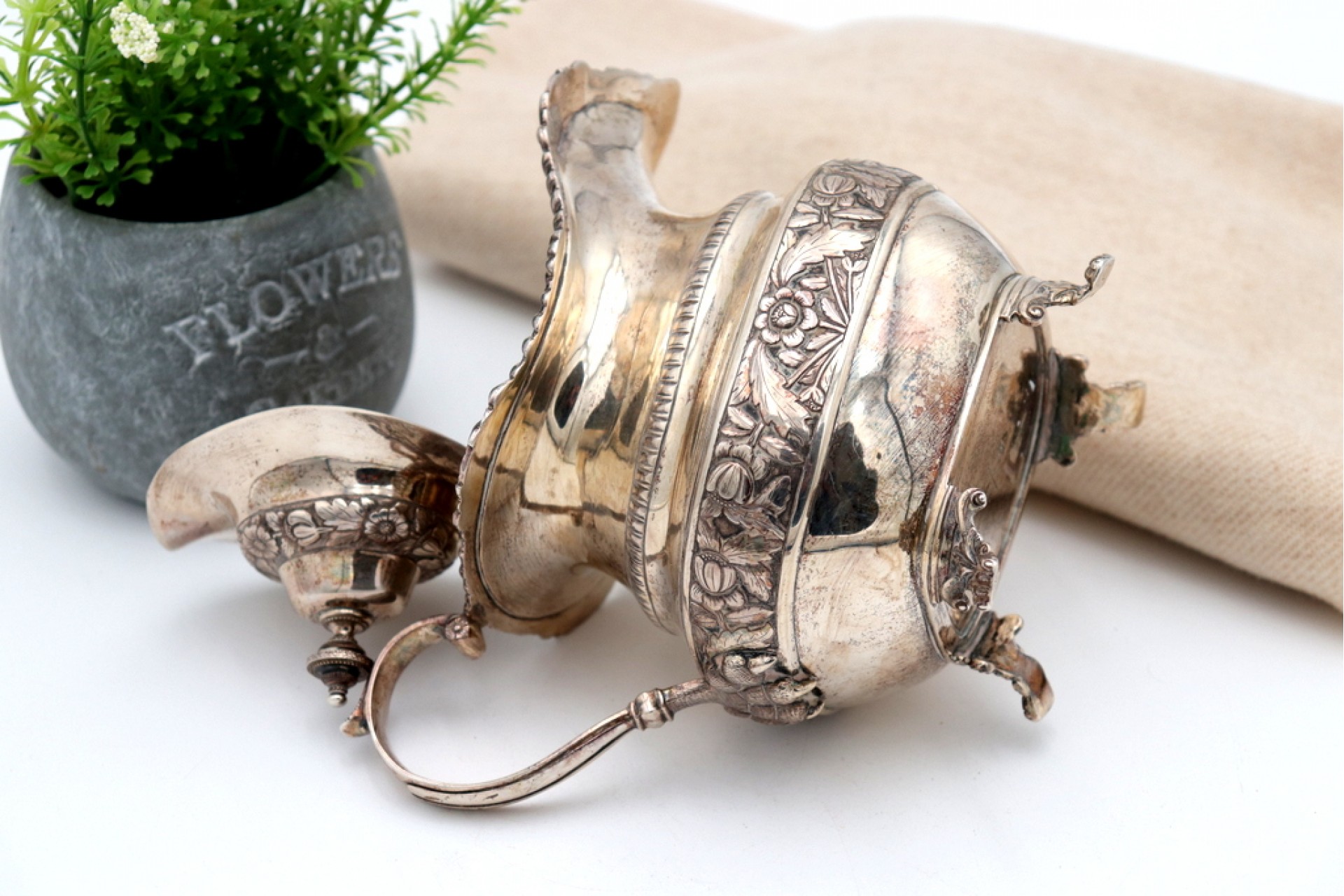 Etiquetas: Leiteira, Prata, Relevos, Aplicações, Garras