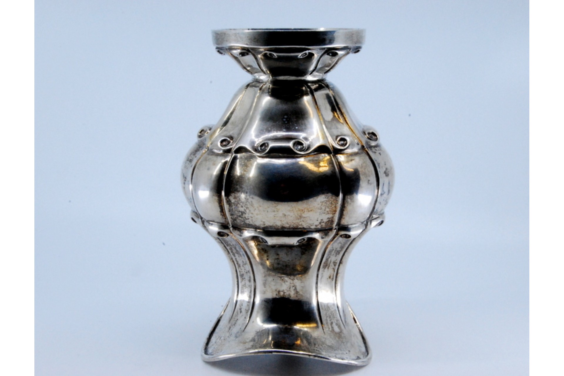 Leiteira em prata gomada com enrolamentos relevados e base em formato circular