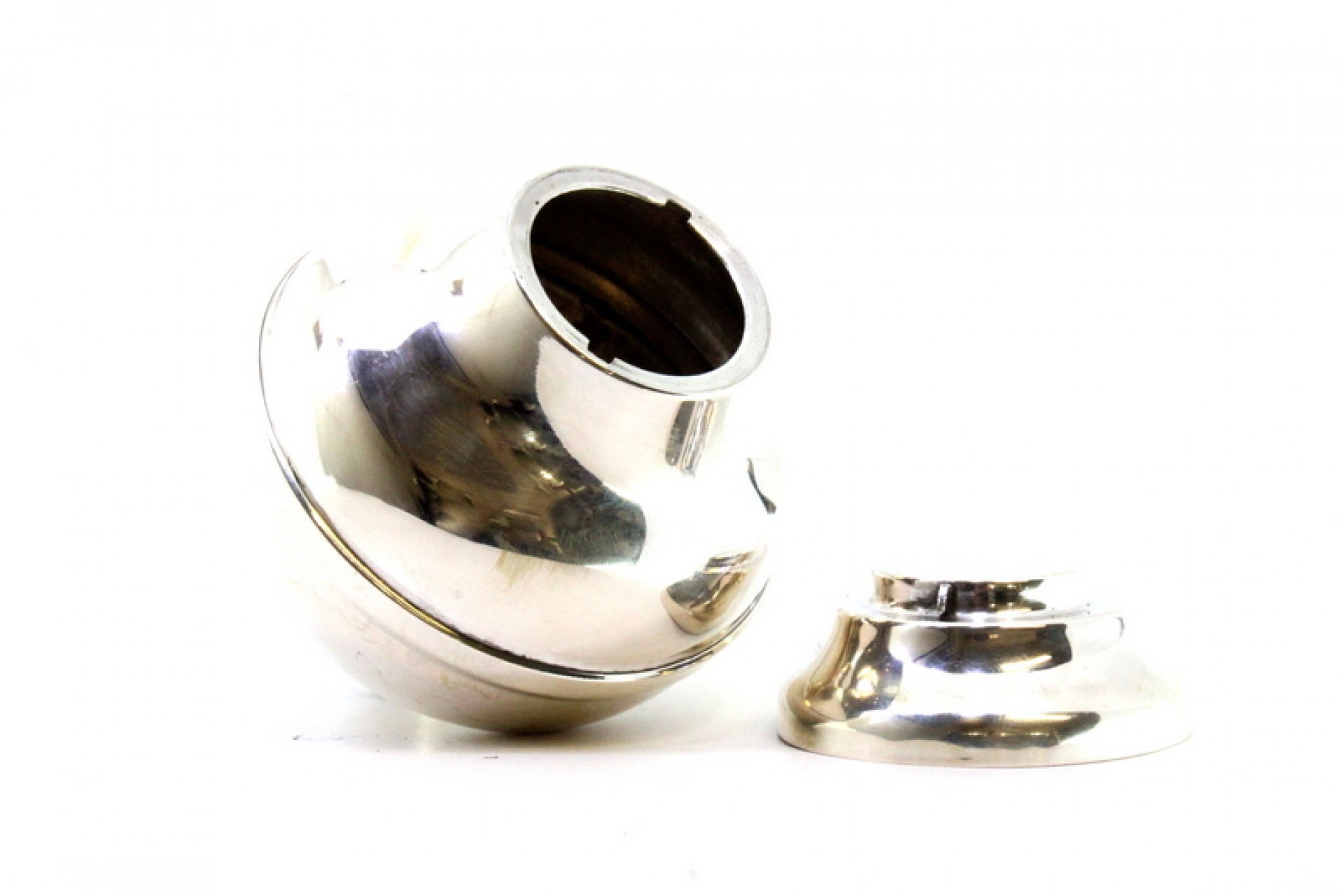 • Descrição: Mealheiro em prata liso com base amovível e pomo no cimo.