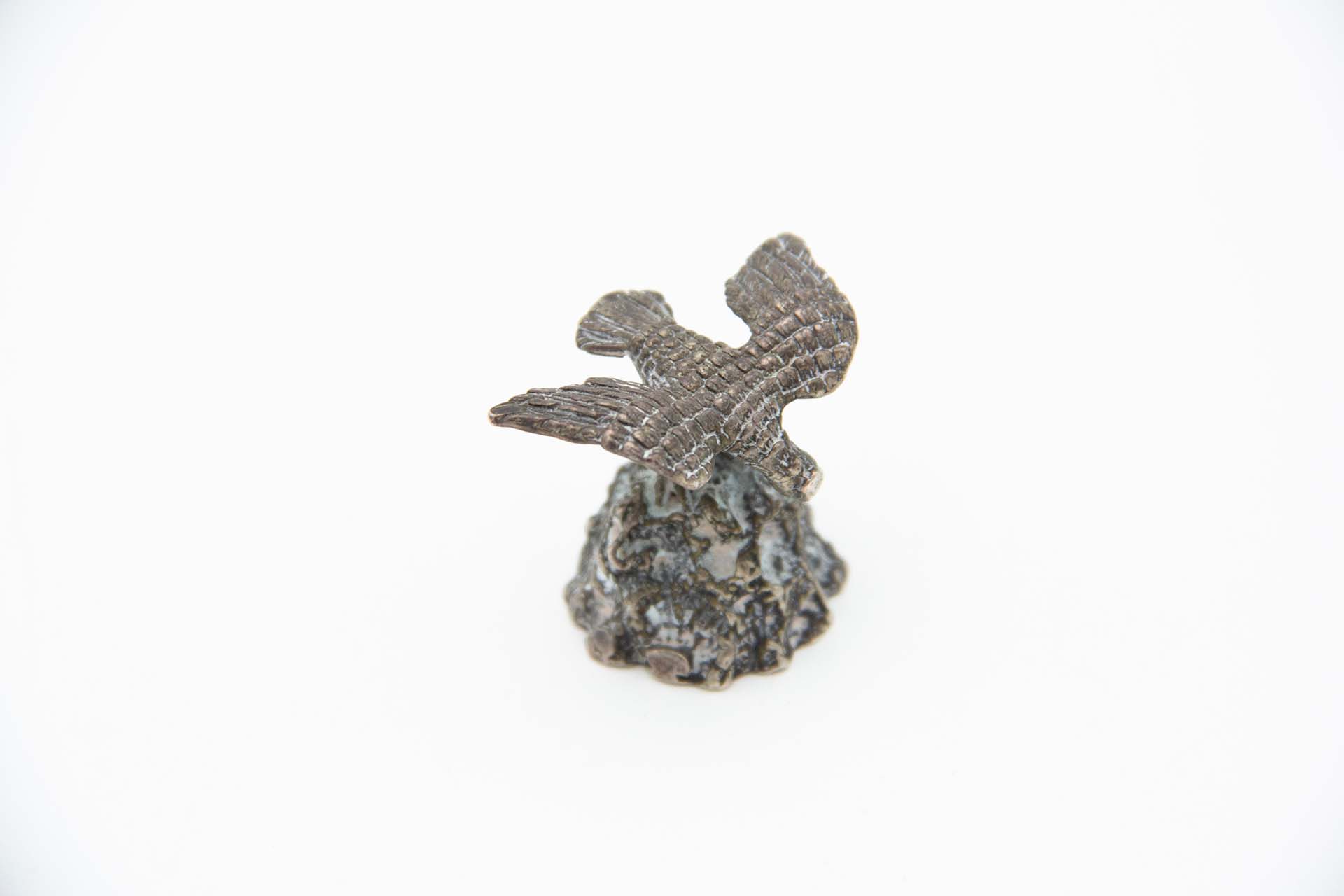 • Descrição: Miniatura de águia em prata sobre penhasco.
