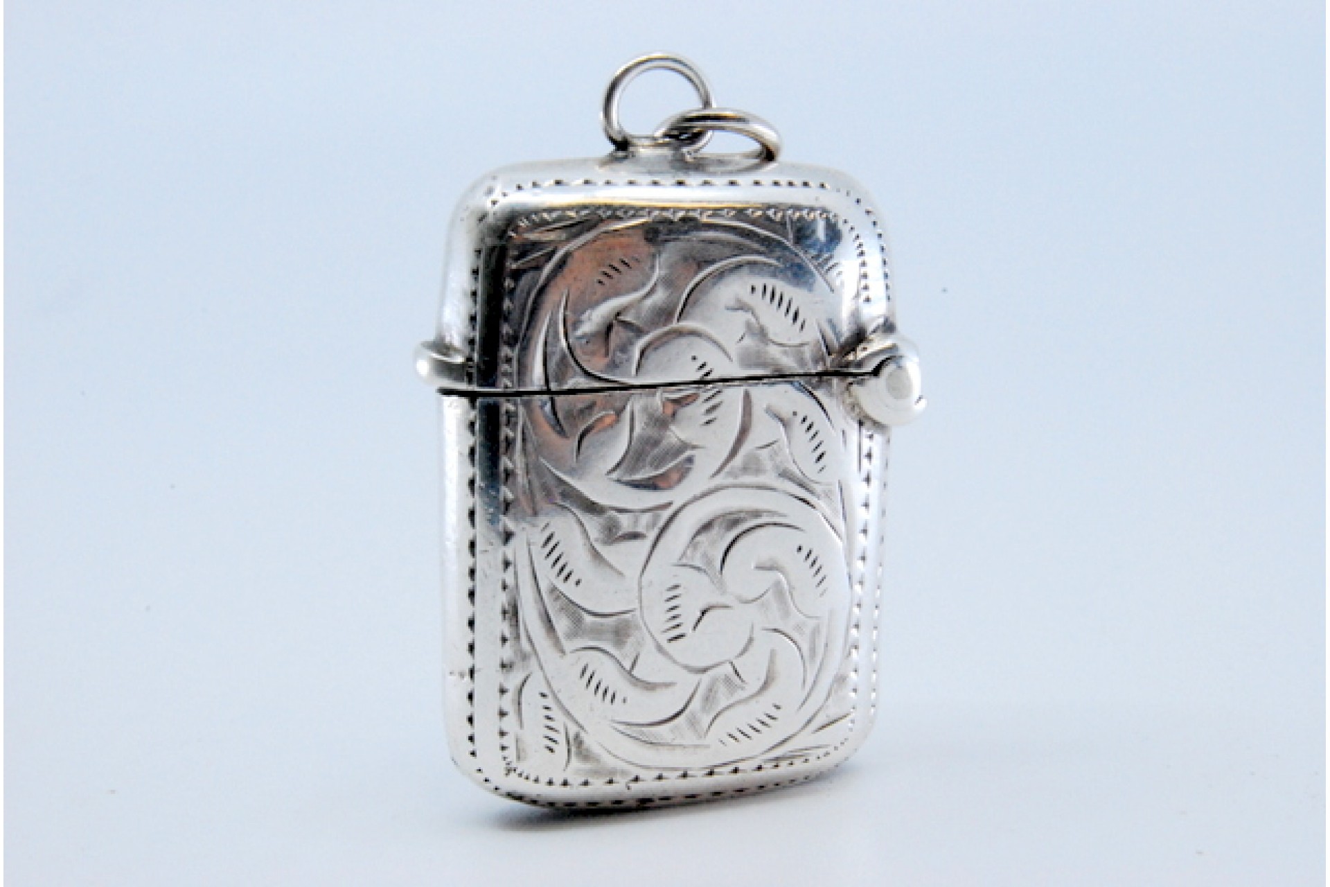 Fosforeira em prata com motivos vegetalistas gravados envolvendo cartela para monograma