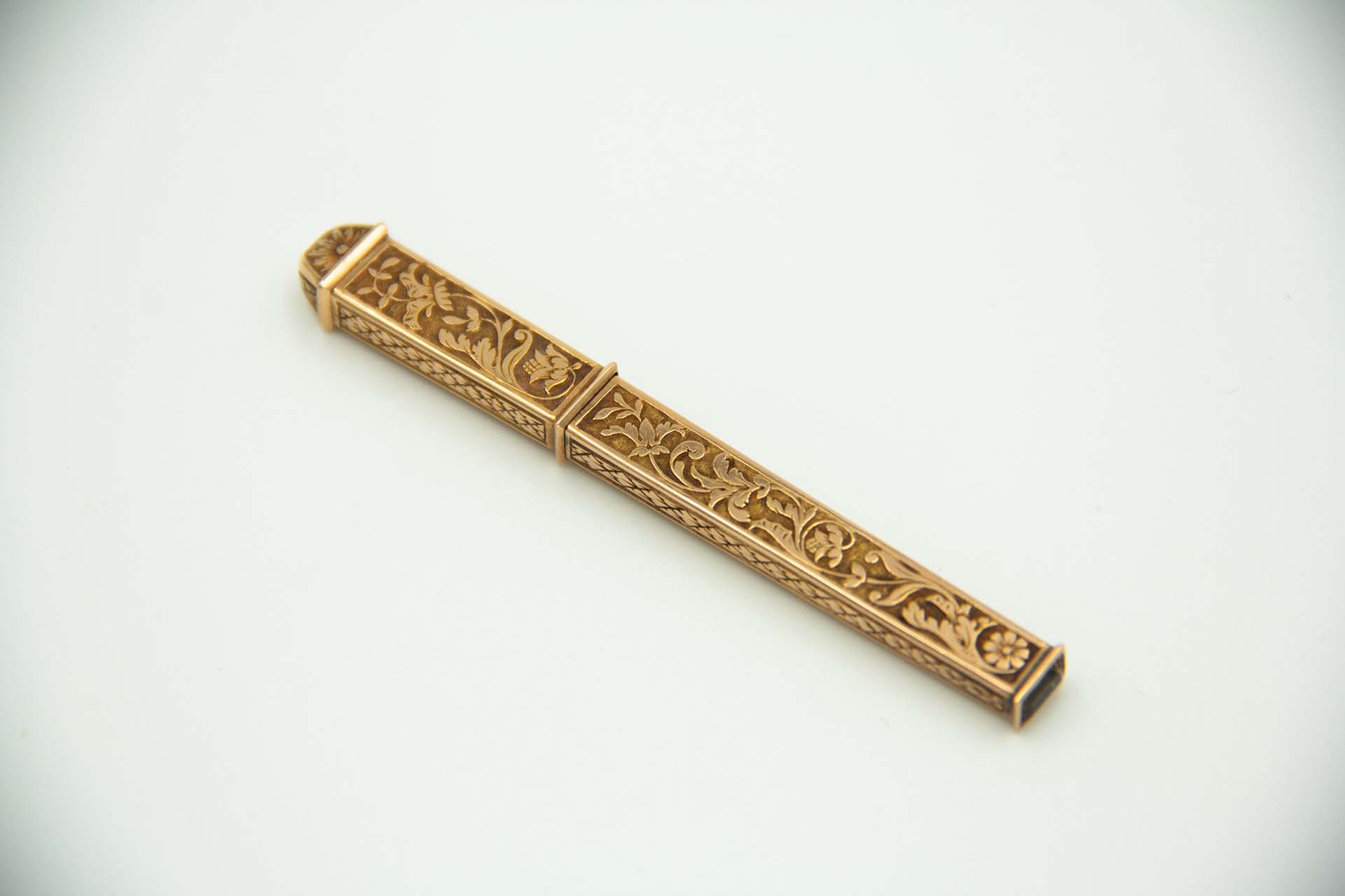 Agulheiro relevado com grinaldas em ouro amarelo