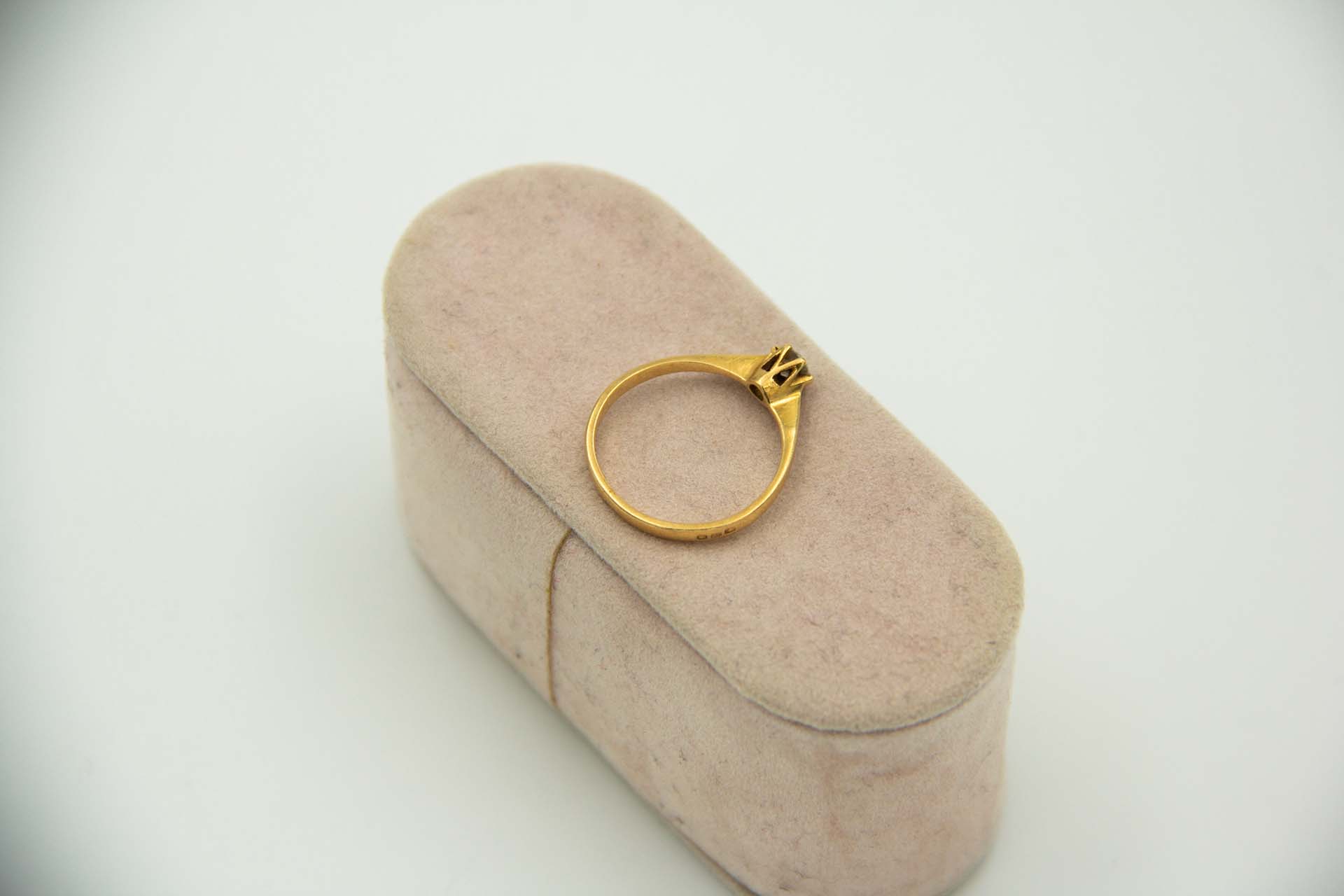• Descrição: Anel de ouro amarelo ao estilo Lady Di com diamante em talhe brilhante encastrado.