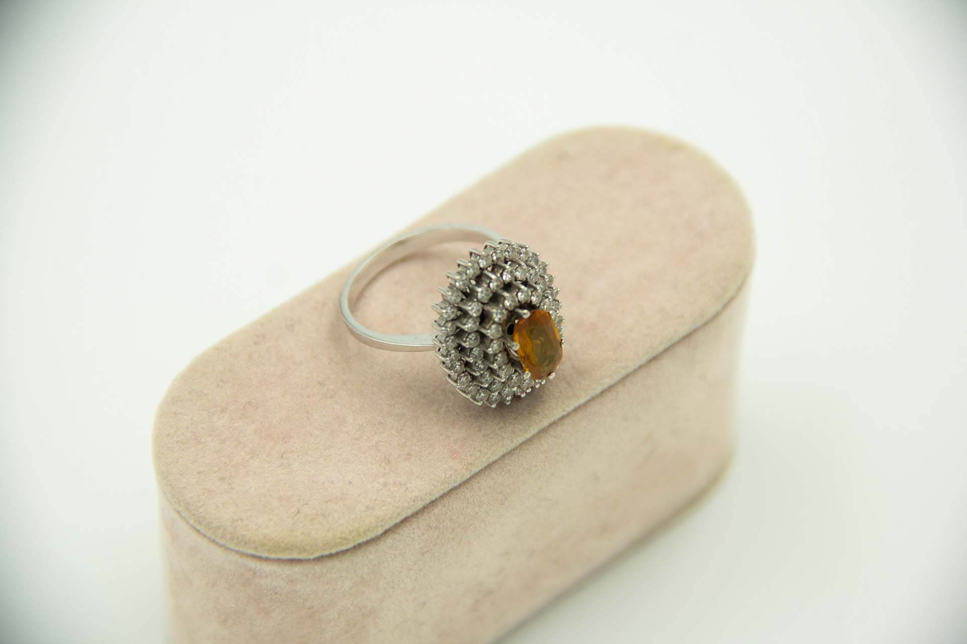 Anel de ouro branco em forma de chuveiro com topázio aplicado no centro
