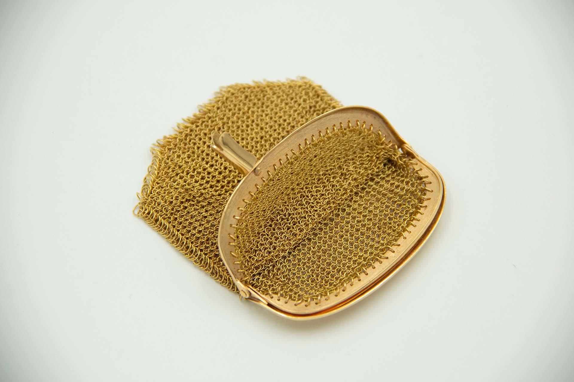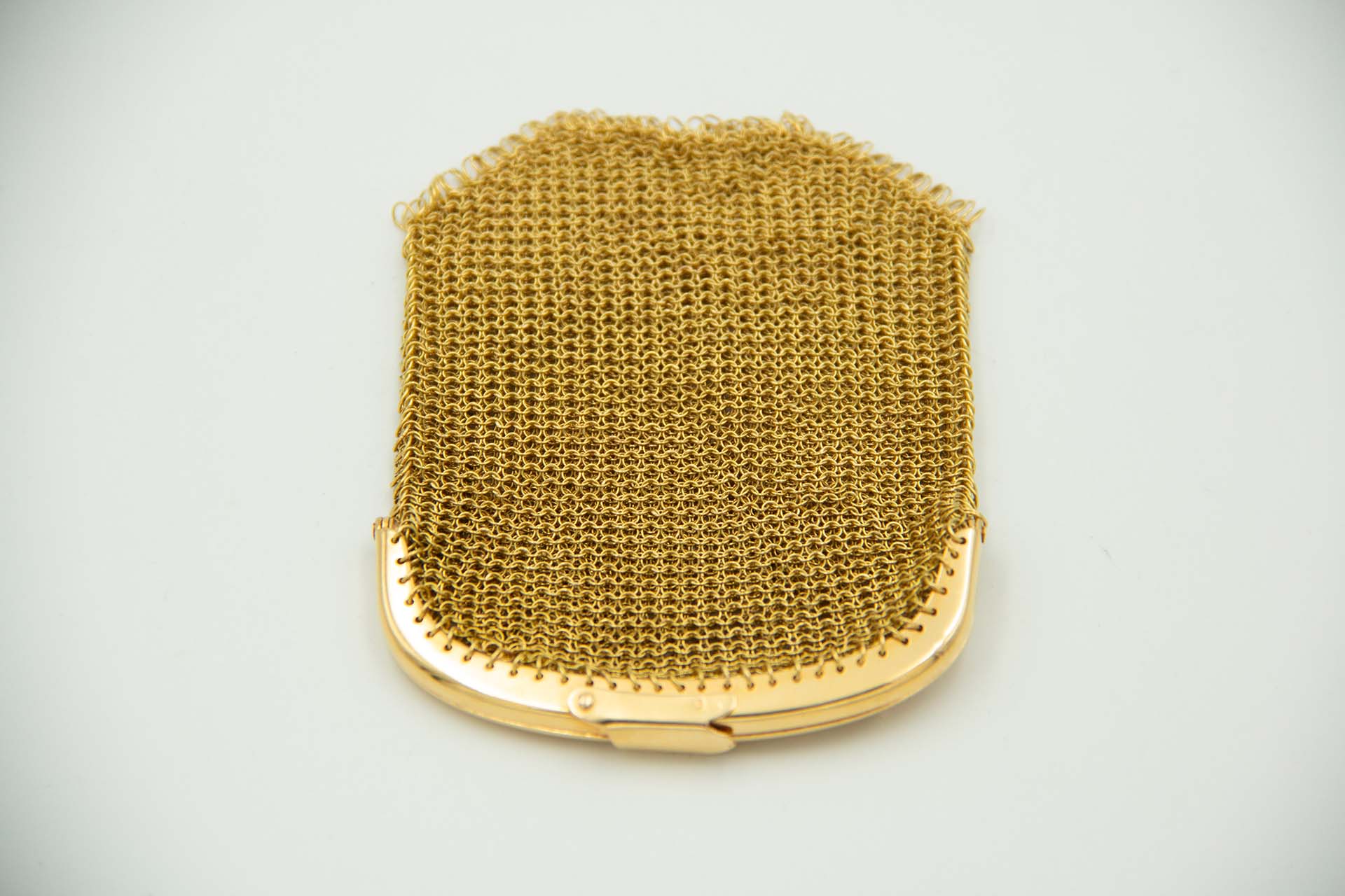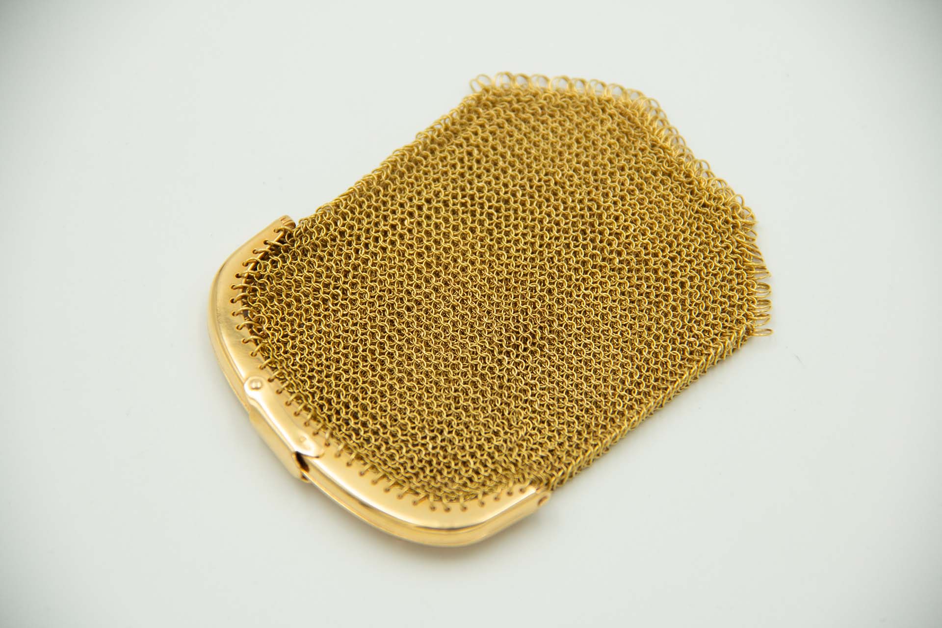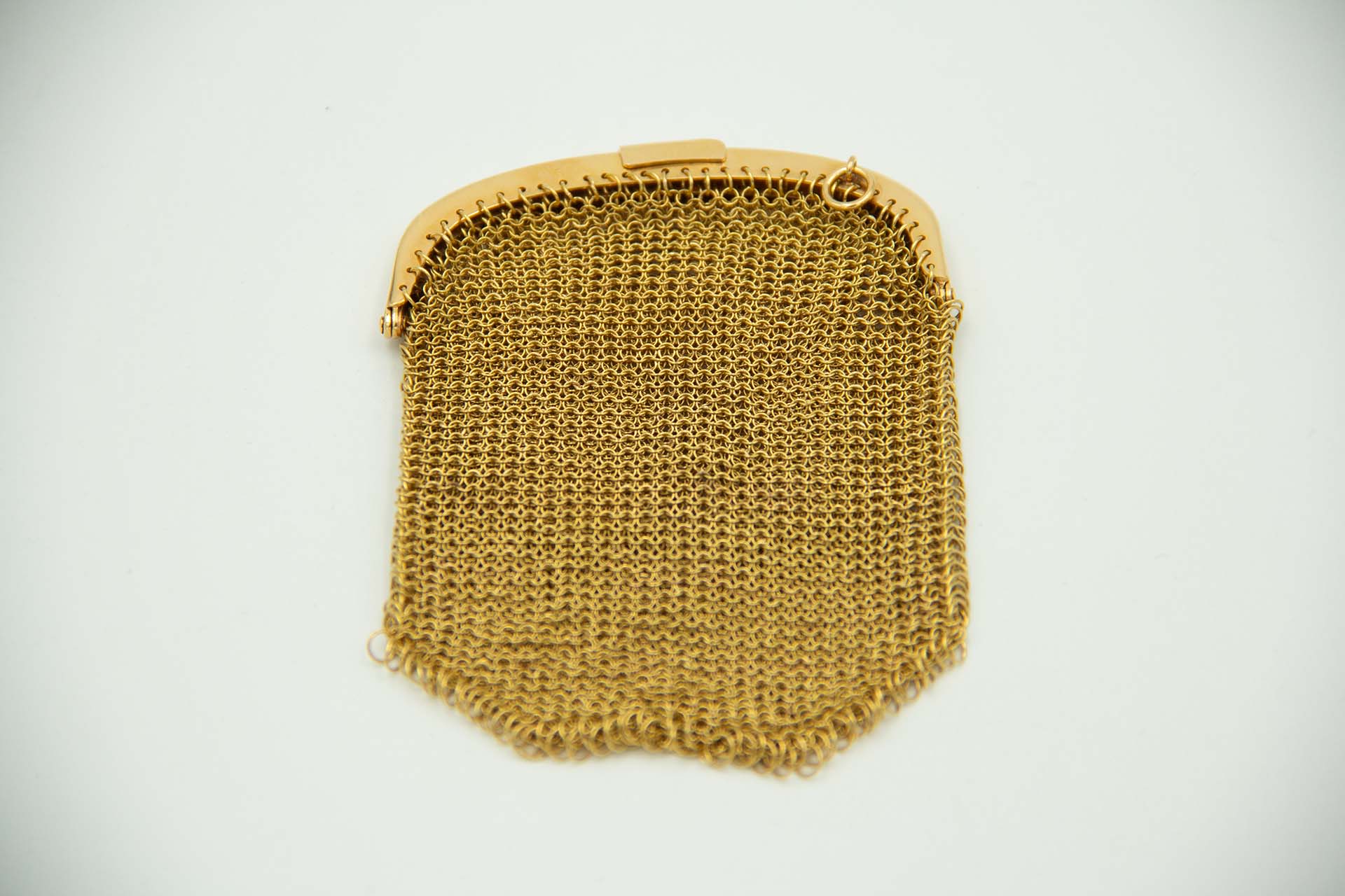 • Descrição: Porta moedas com malha e fecho em ouro e duas divisórias.