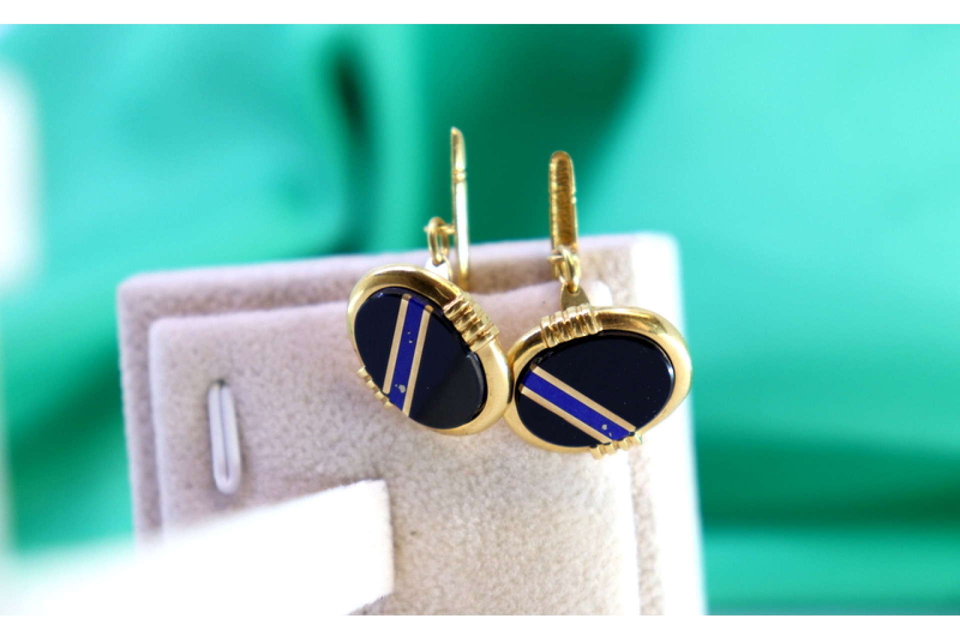 • Descrição: Botões de punho em ouro com relevos faixa azul sobre onix oval.