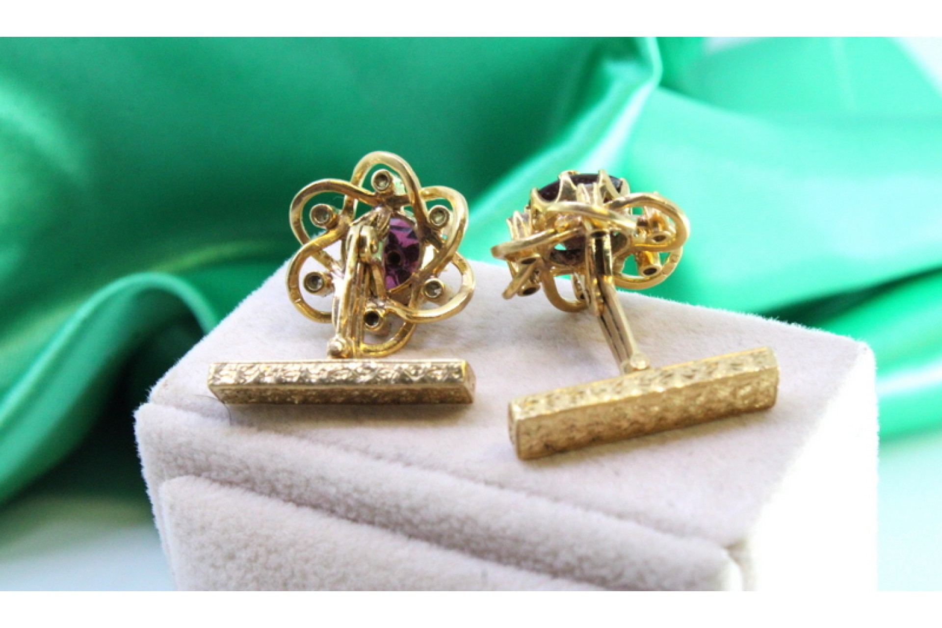 Botões de punho em ouro em forma de flores com onix no centro e dimantes (12)