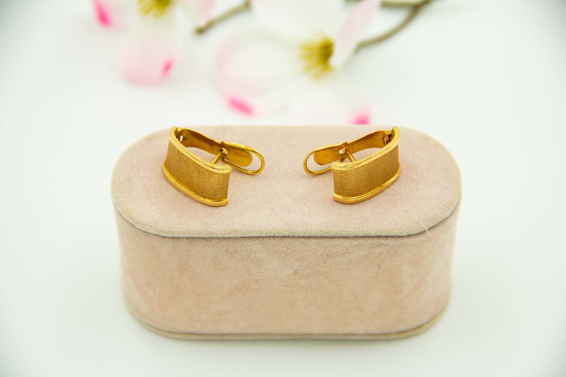 • Descrição: Par de brincos em ouro amarelo com duas bandas e centro escovado.