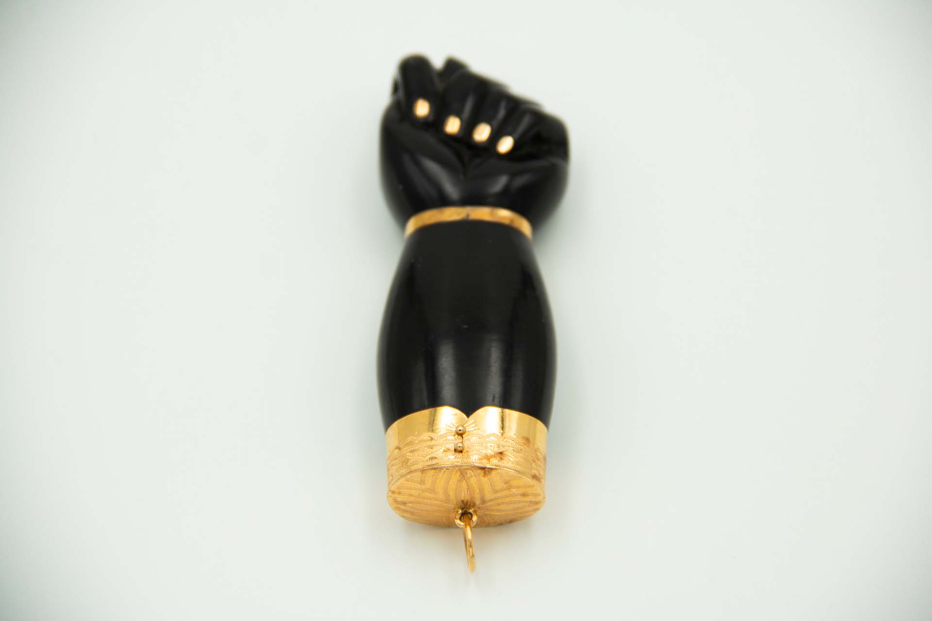• Descrição: Figa em azeviche e aplicações de ouro amarelo.