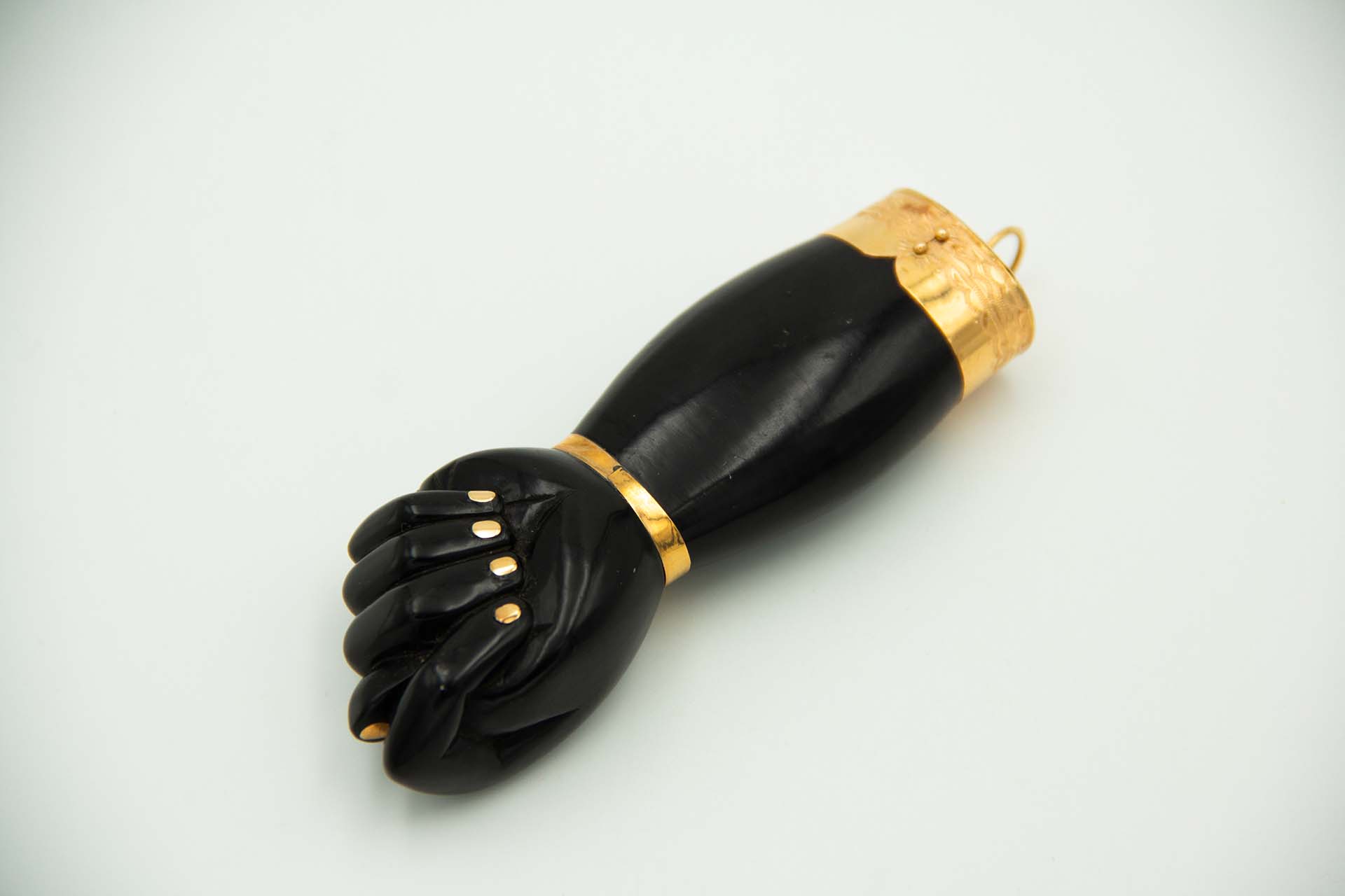 Figa em azeviche e aplicações de ouro amarelo