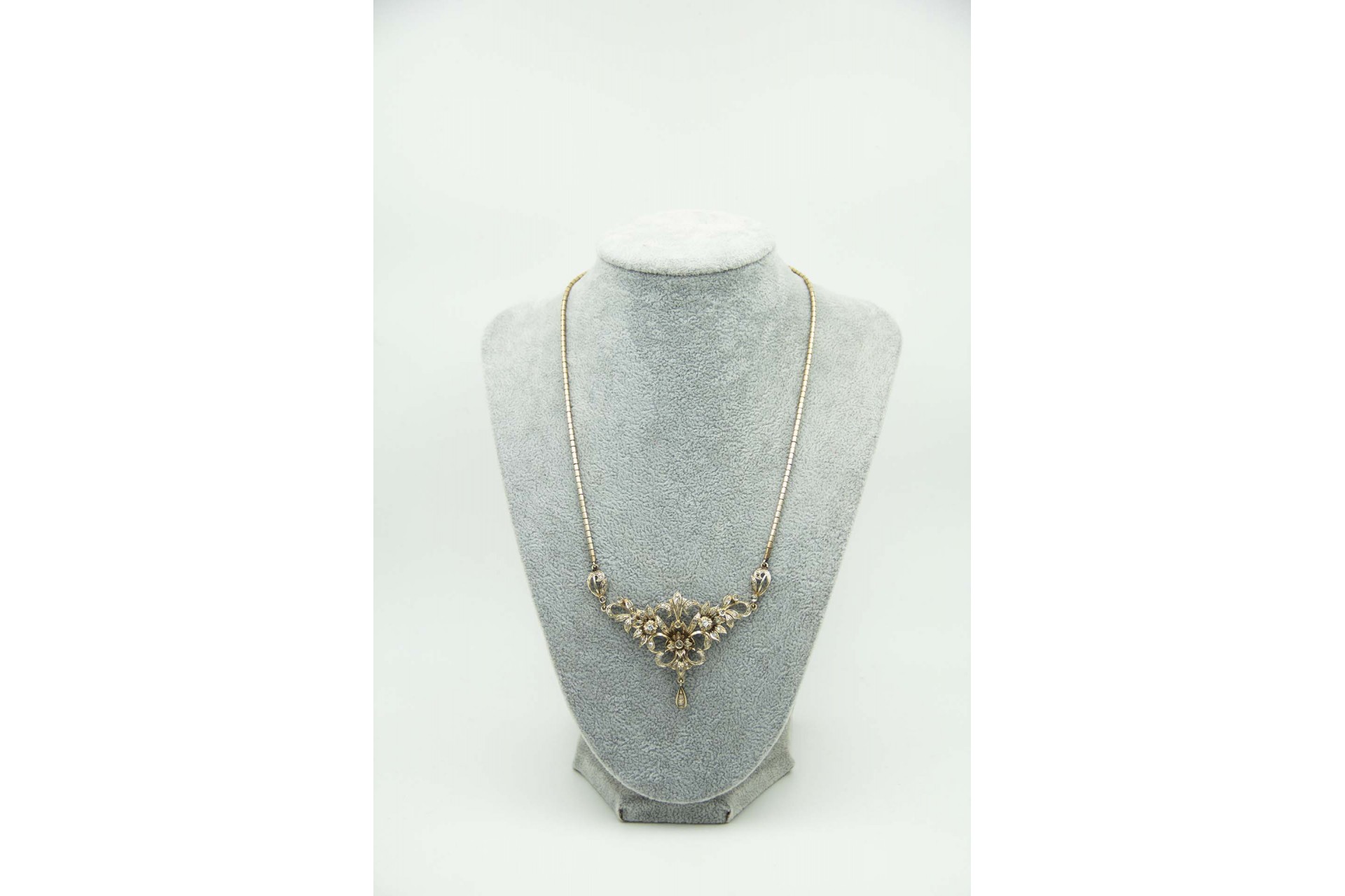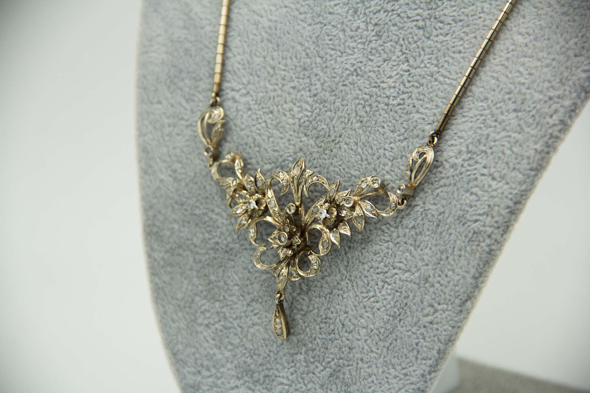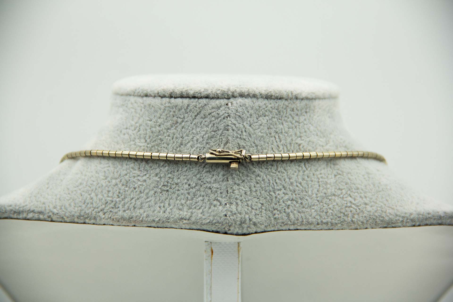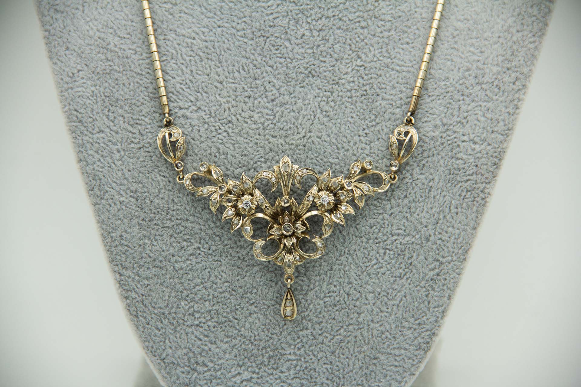 • Descrição: Gargantilha de ouro branco com lascas de diamantes.