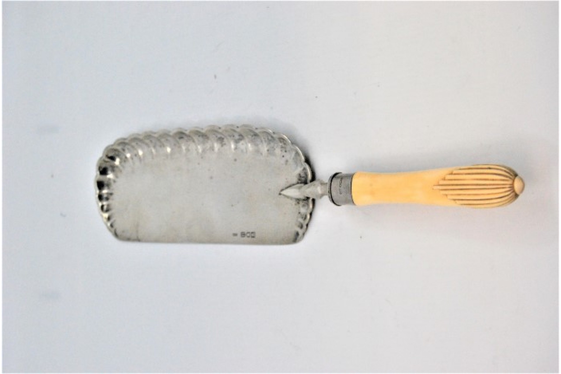 • Descrição: Espátula para bolos em prata de rebordo ondeado e cabo em osso do período Vitoriano.