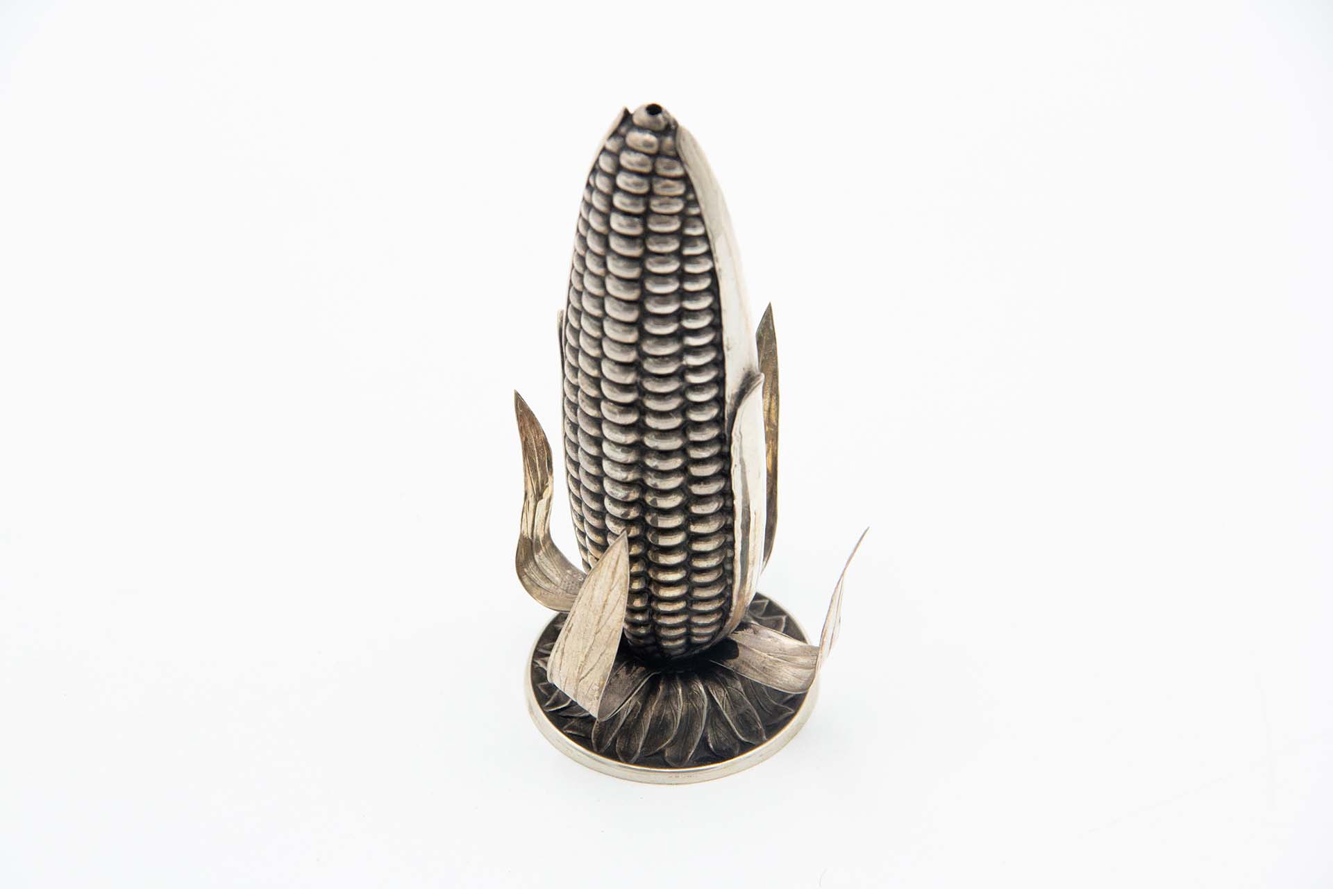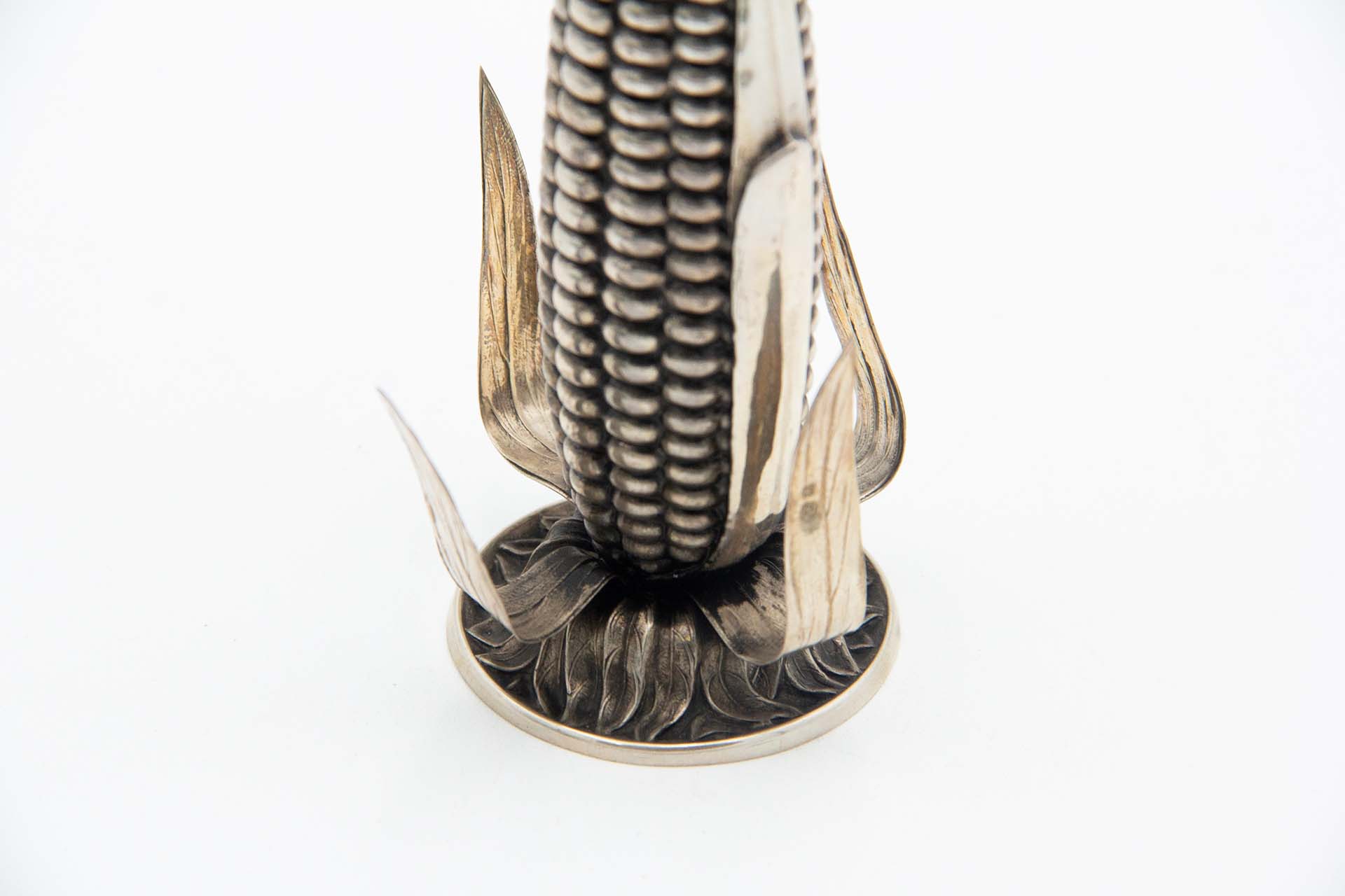 • Descrição: Paliteiro de prata com base circular em forma de massaroca de milho.