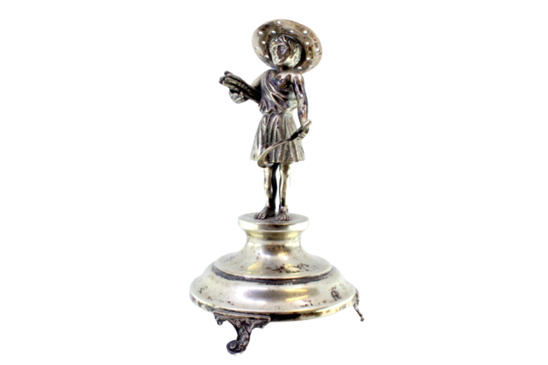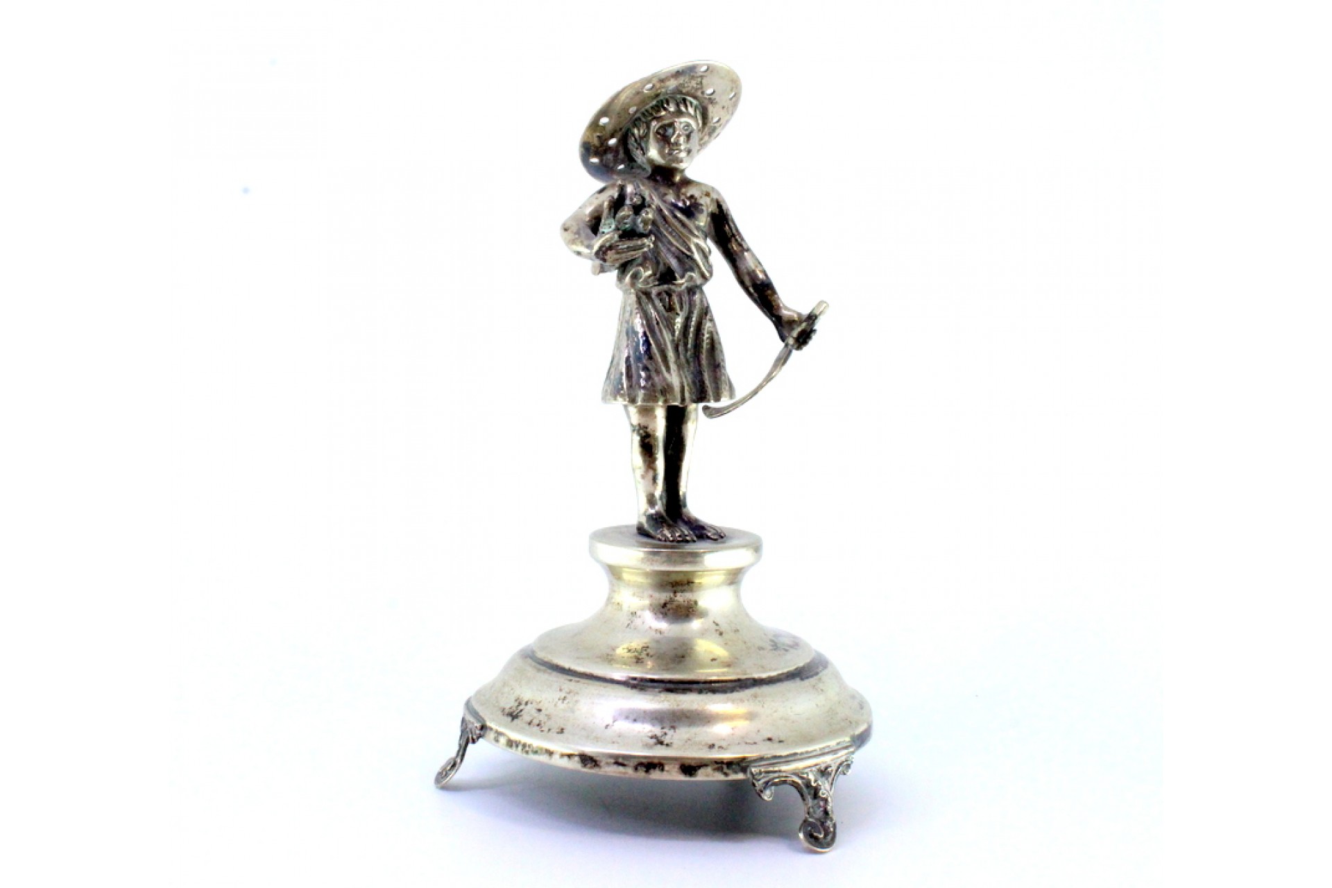 Paliteiro de prata com figura de vendedor