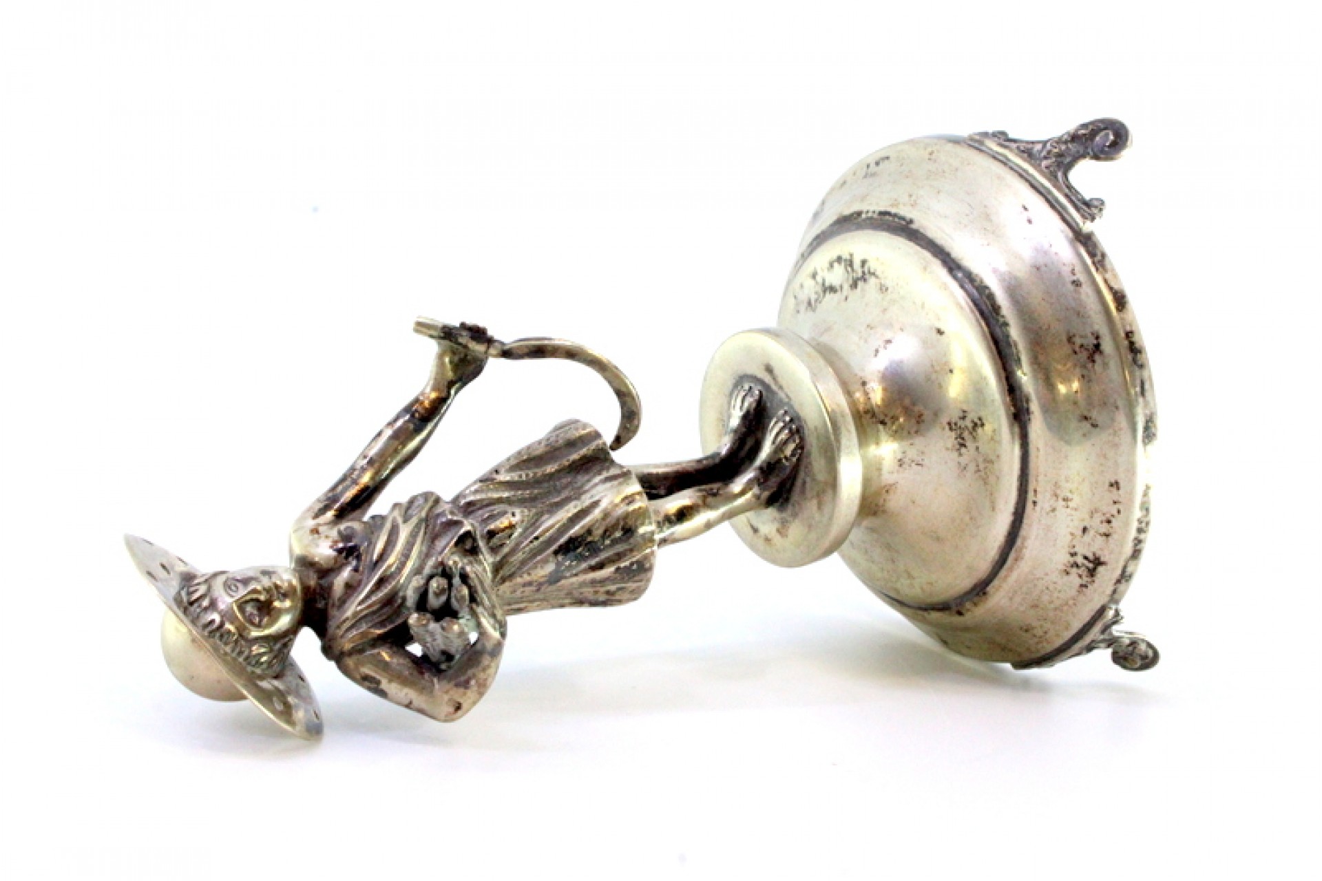Paliteiro de prata com figura clássica em suporte de cálice