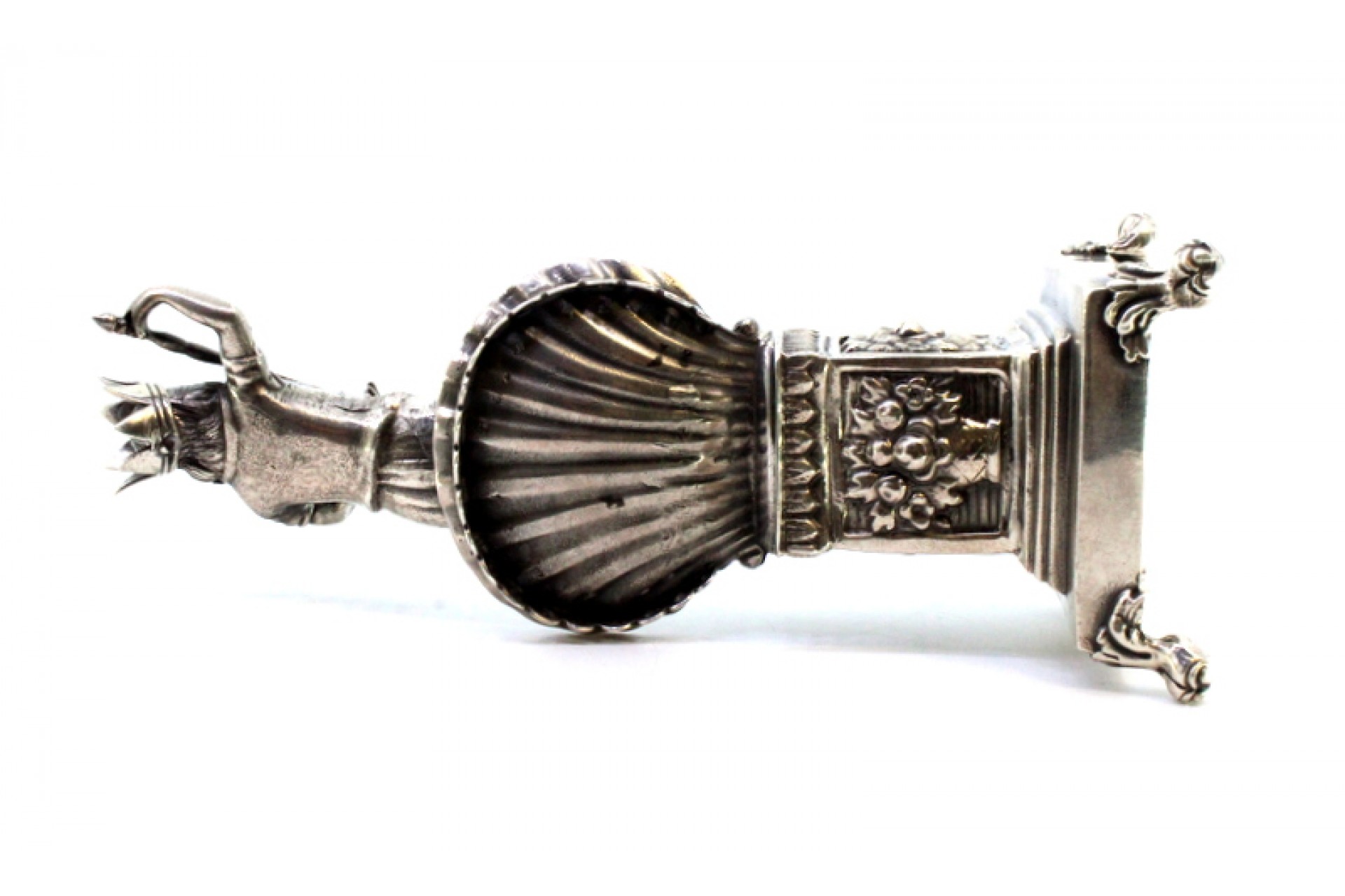 Paliteiro em prata com aplicações de Neptuno com tridente, concha sobre pedestal