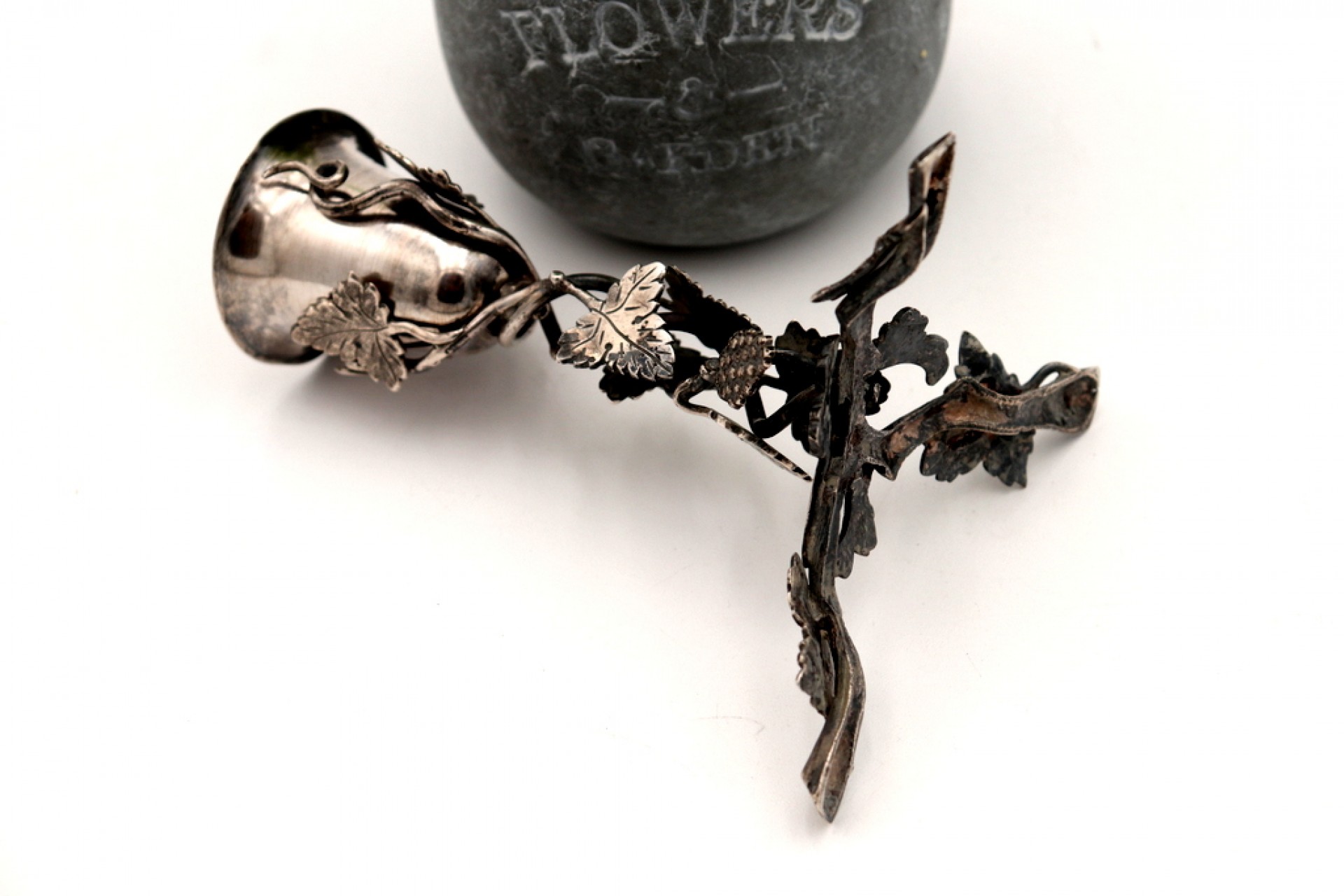 • Descrição: Paliteiro em prata com cálice sobre acanteiro e trepadeira com troncos em formato trípode.