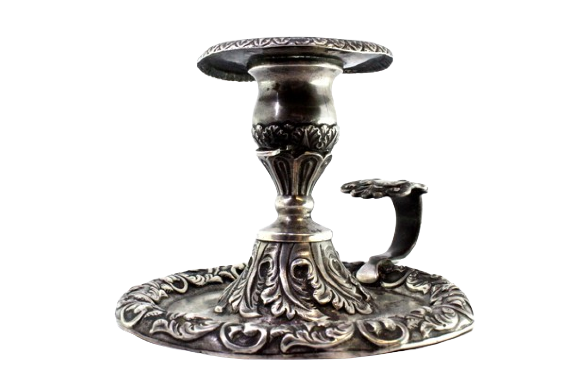 • Descrição: Palmatória em prata com motivos florais revelados, com cartela para monograma na pega.