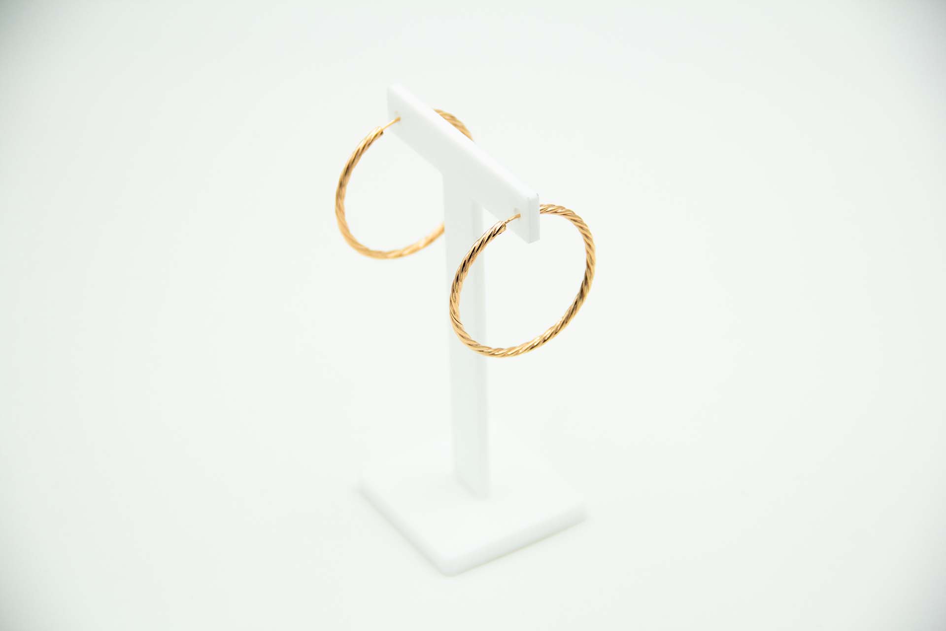 • Descrição: Par de argolas em ouro amarelo em formato torcido.