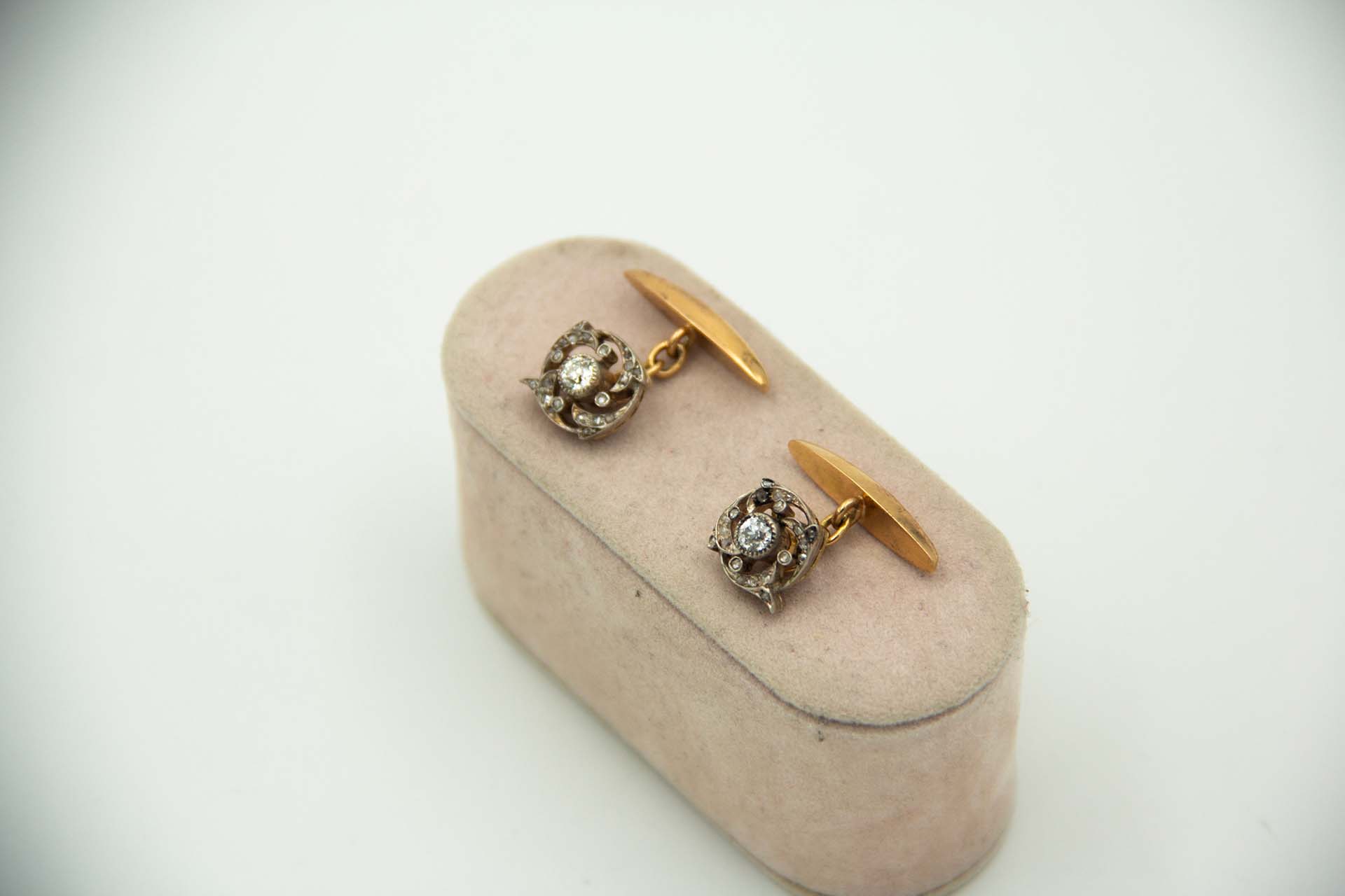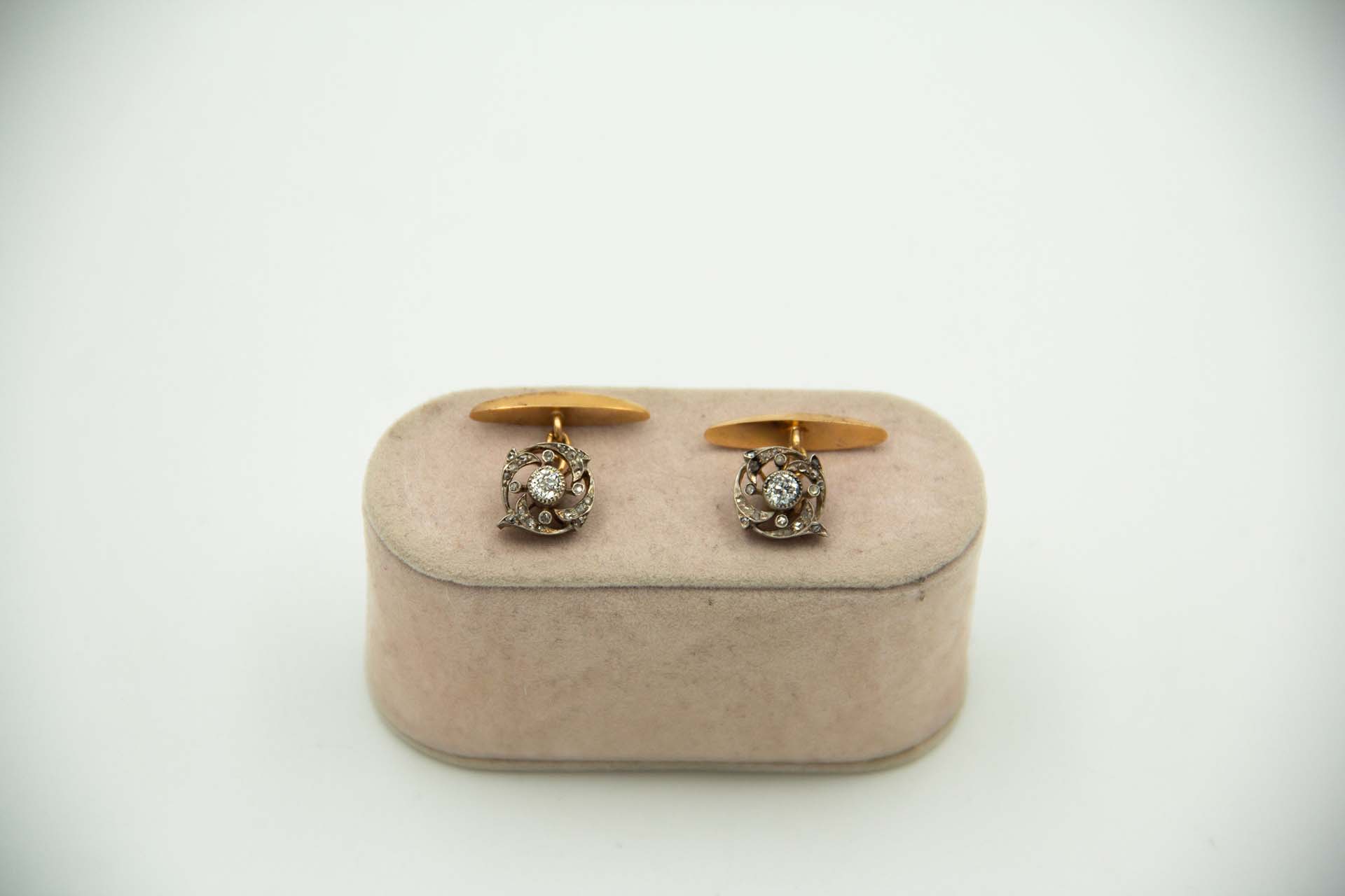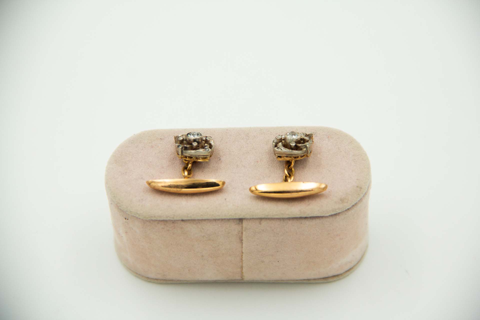 Par de botões de punho em ouro amarelo e platina com diamantes (2)
