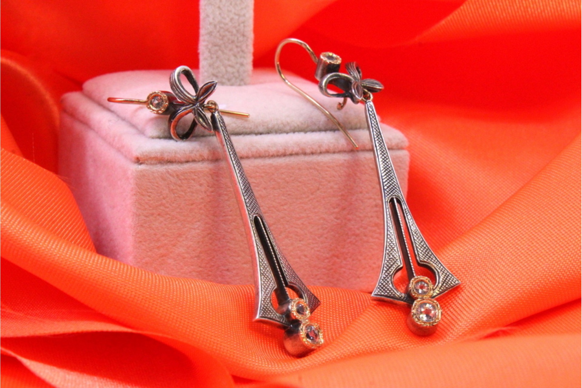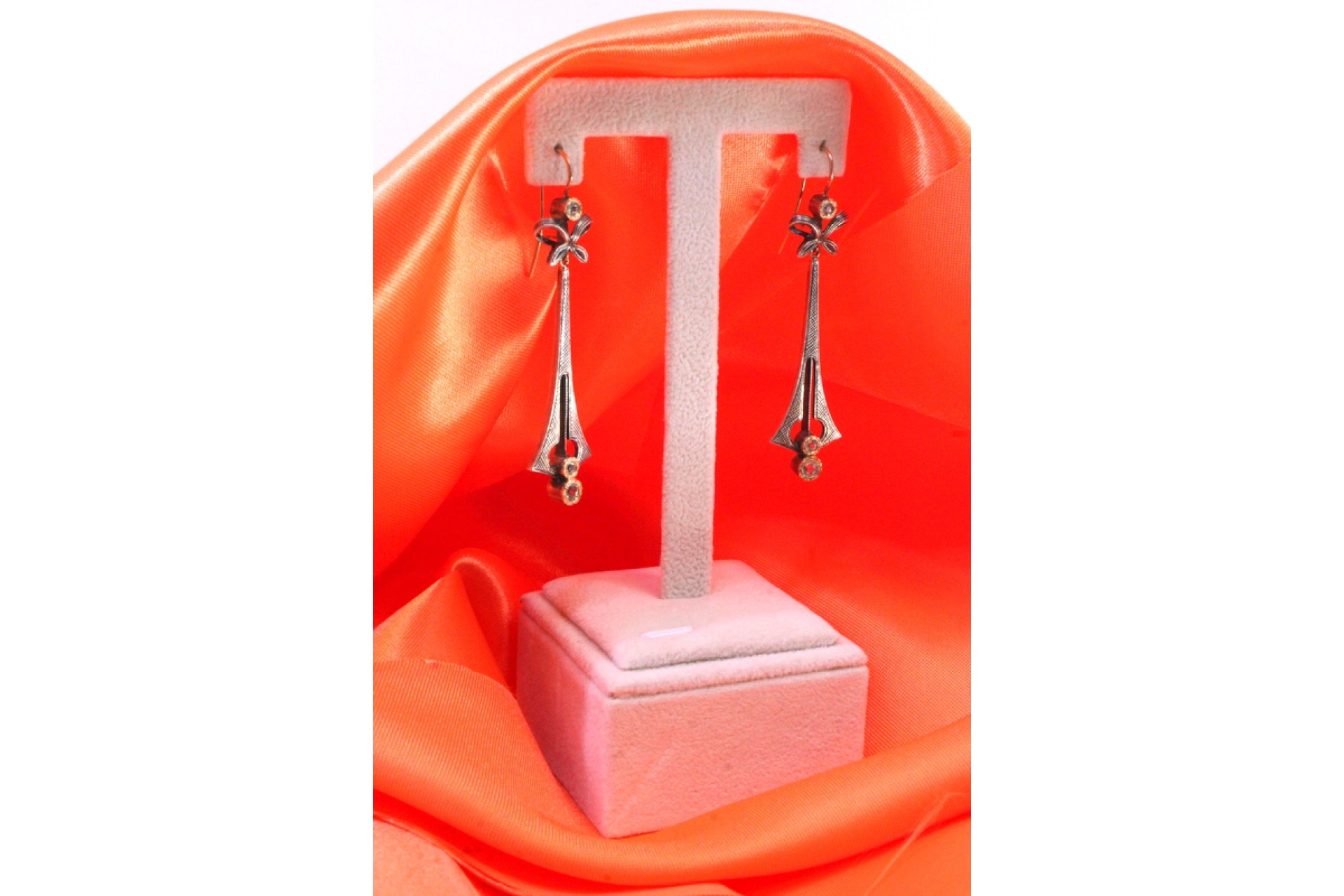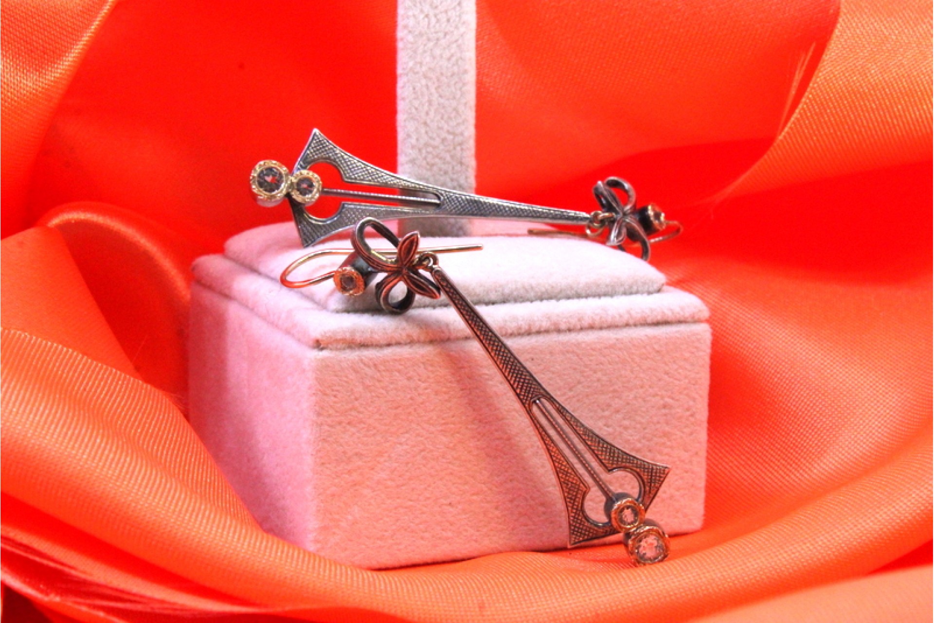 • Descrição: Par de brincos em ouro e prata com  zircónias e forma articulada.