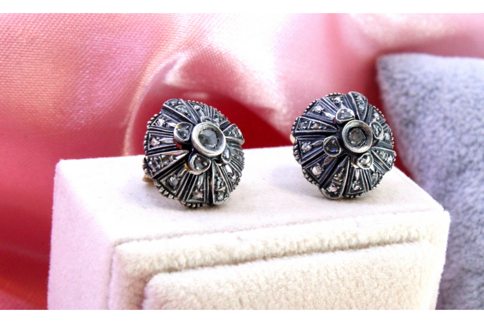 • Descrição: Par de brincos em ouro e prata circular com lascas de diamante e zircónias no centro.