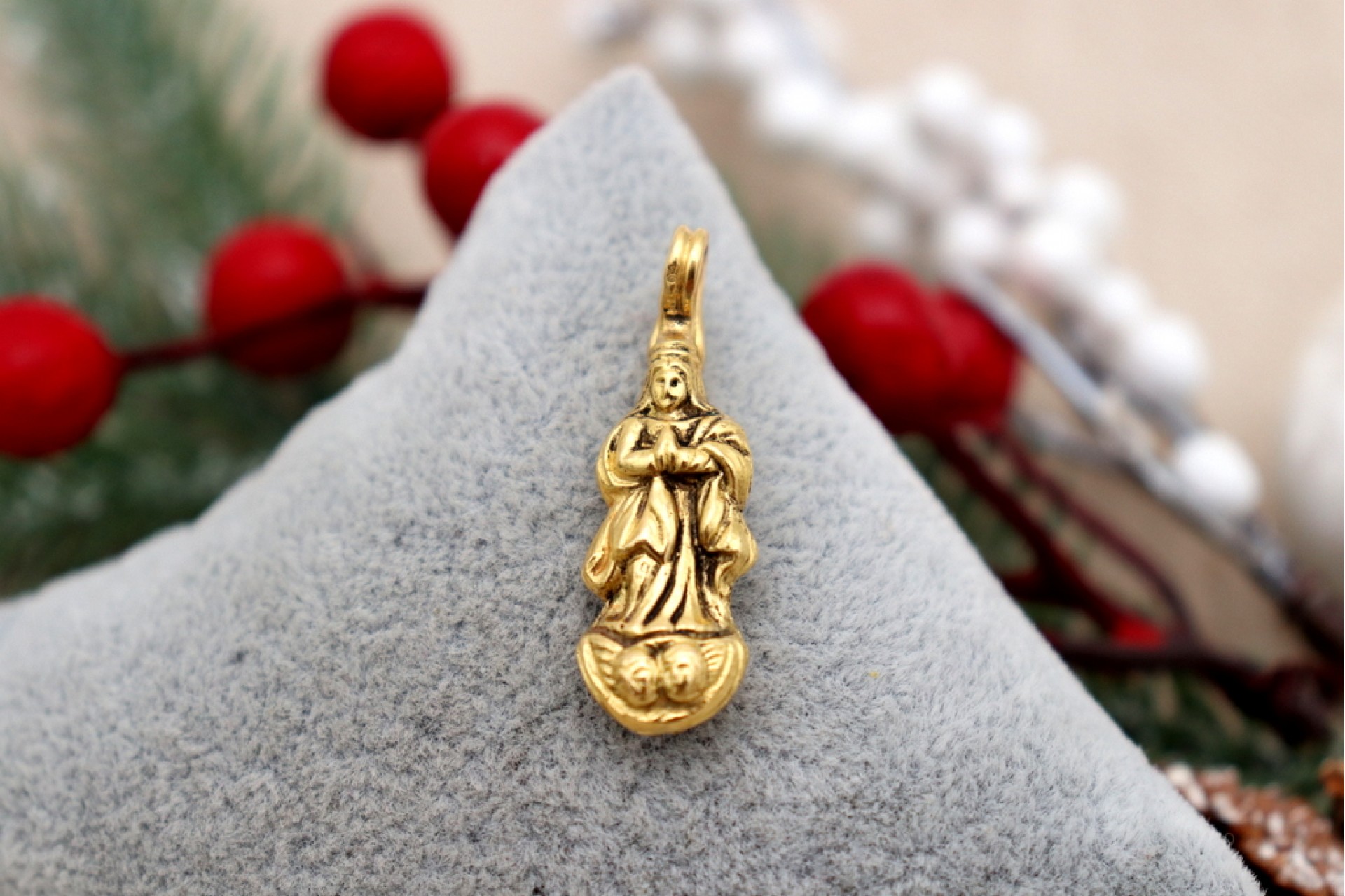 Pendente em ouro com Nossa Senhora da Conceição com as mãos postas