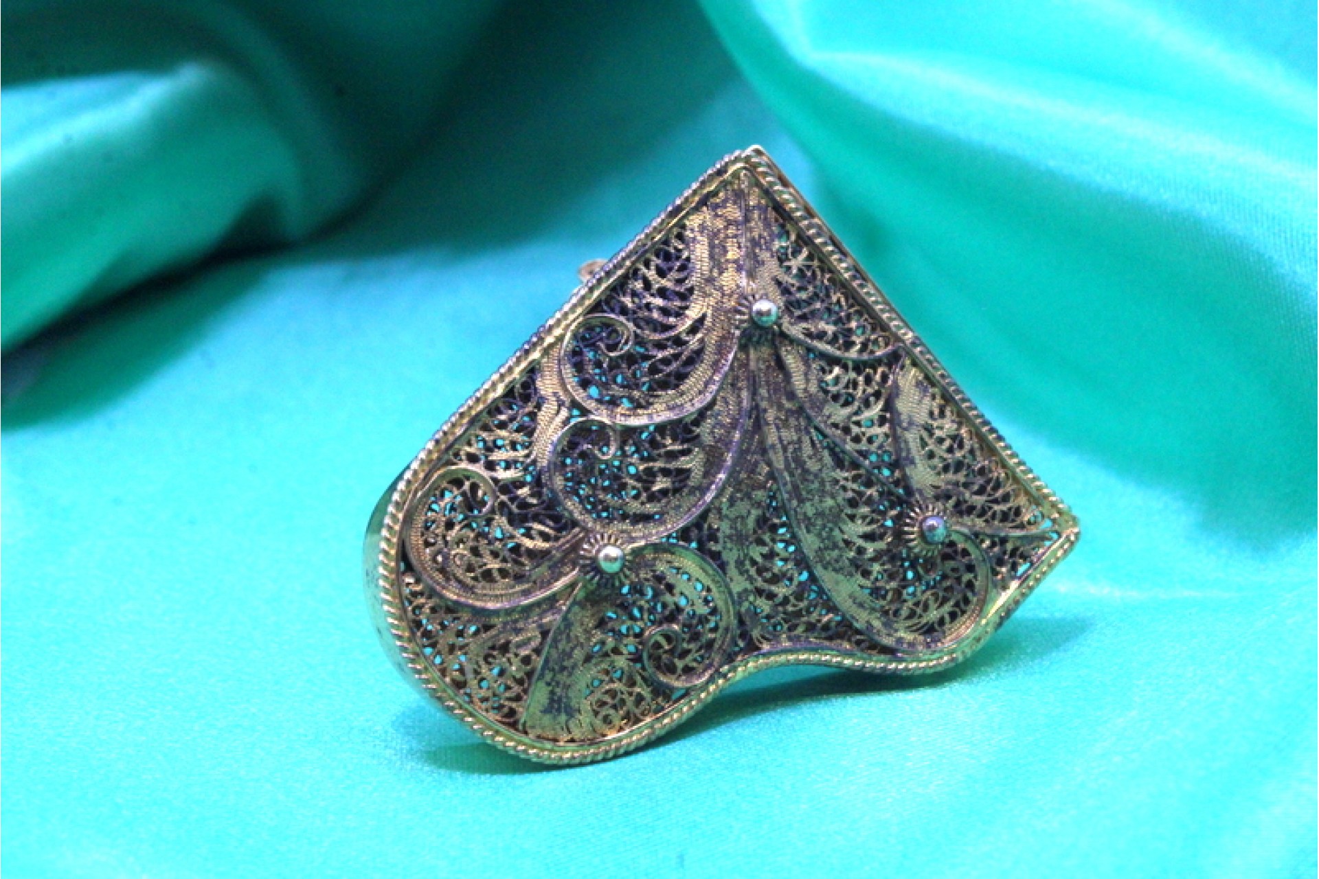 • Descrição: Piano em miniatura em prata filigrana dourada com relevos e aplicações.