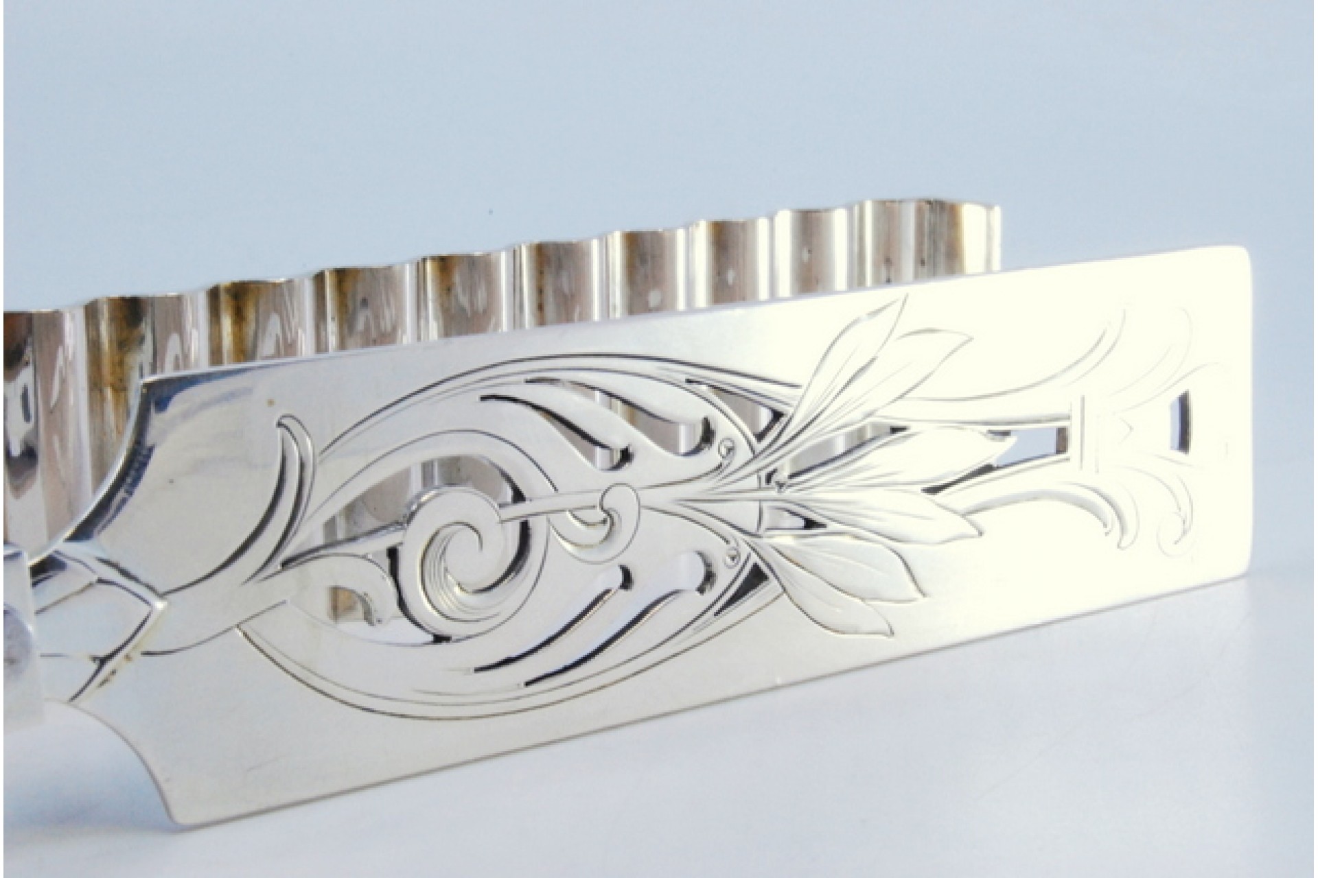 • Descrição: Pinça para salada ou pão em prata recortada e cartelas para monogramas.